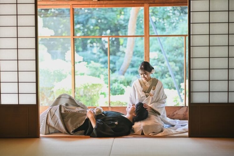 The house has a traditional Japanese-style design, with a charming tea room blending into the garden. Soft light through shoji screens and tatami floors allows relaxed, natural expressions to be captured.