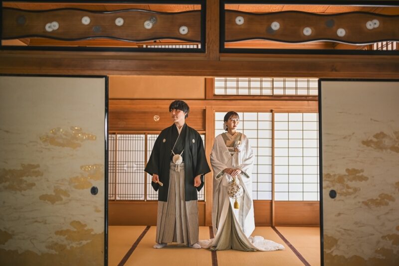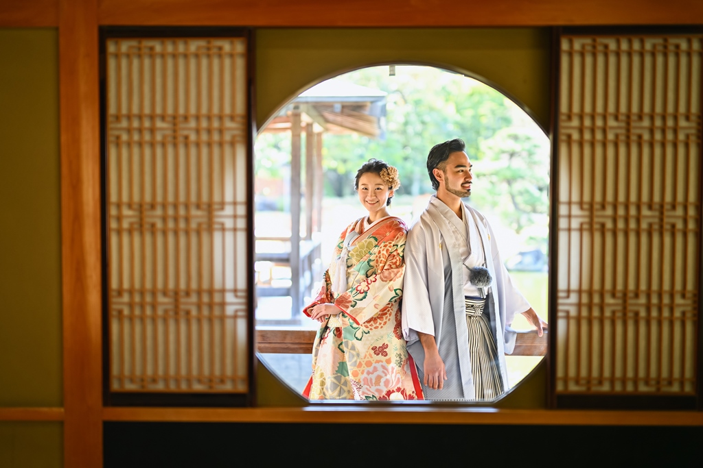 Shiratori Garden’s tea room is one of the most popular spots for couples seeking kimono pre-wedding photography in Nagoya.