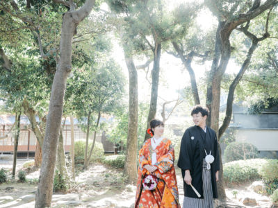 Both Western and Japanese wedding outfits can be beautifully matched with the setting.