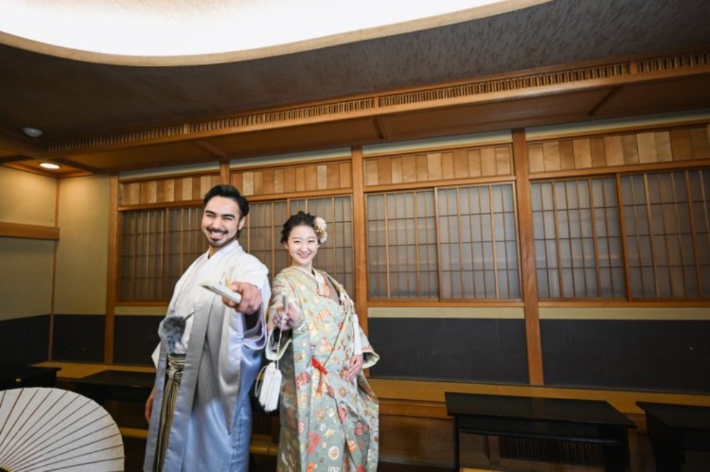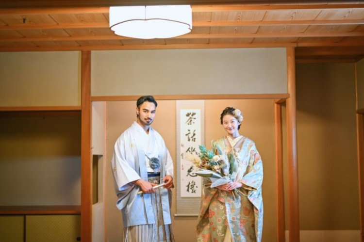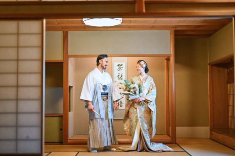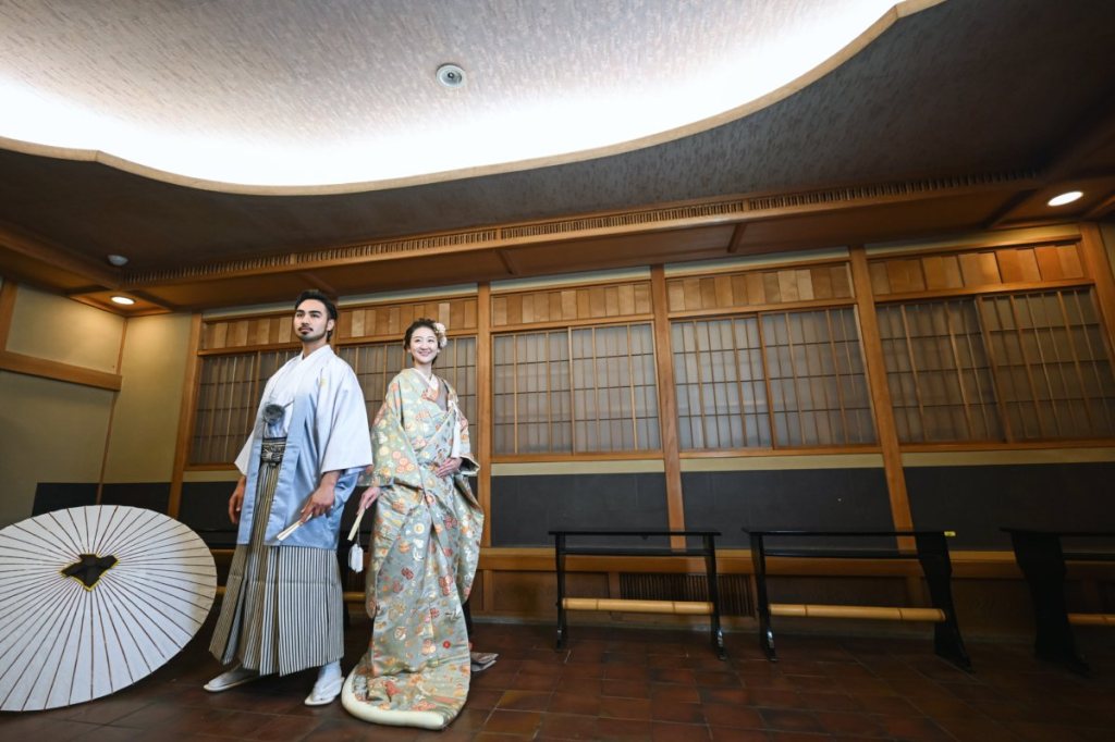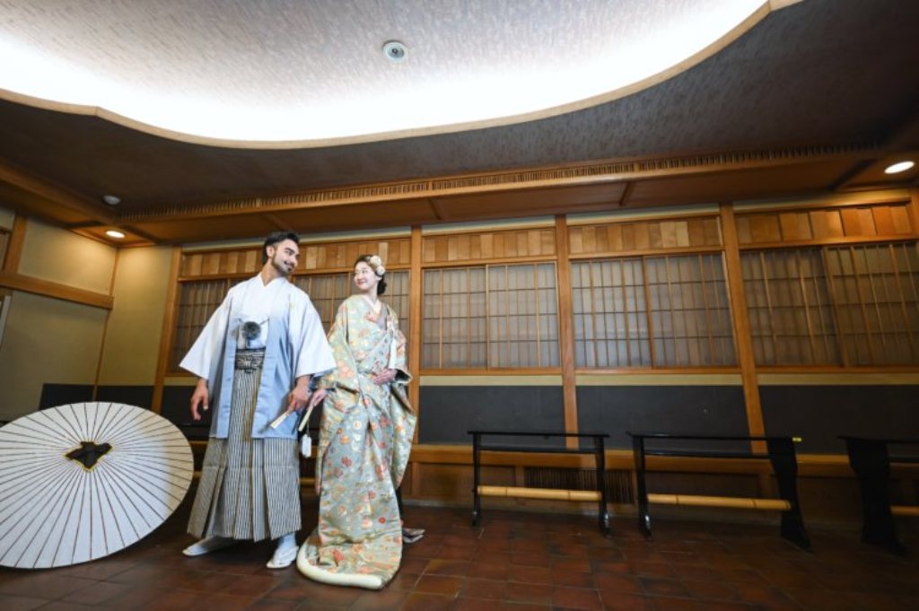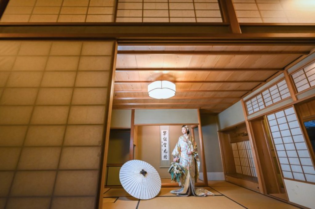 Capture authentic pre-wedding shots in the main tatami room of Murasaki-tei.
