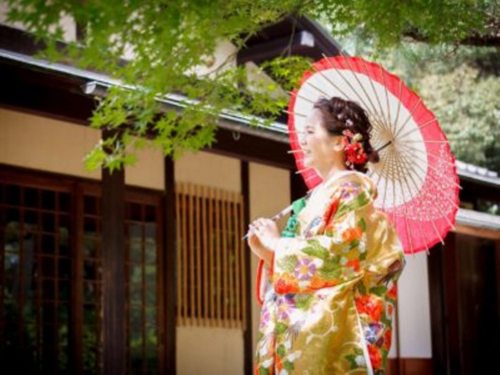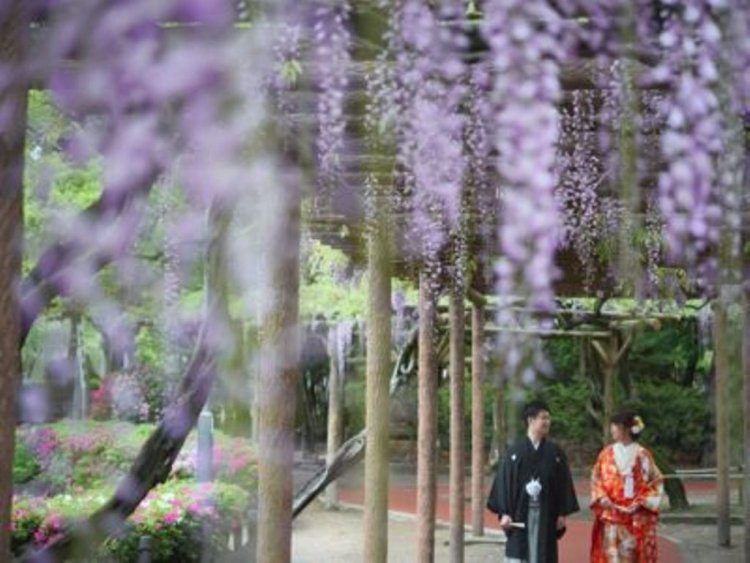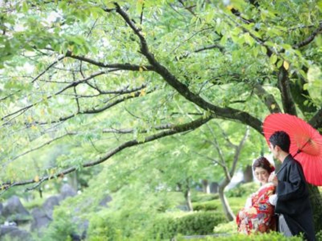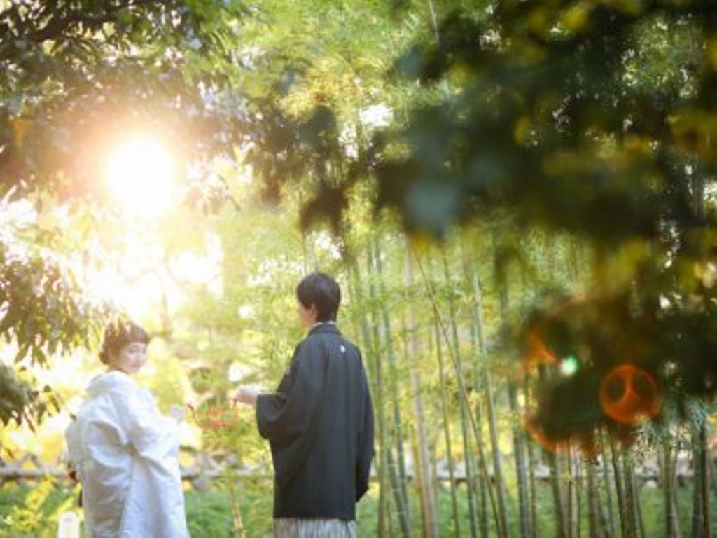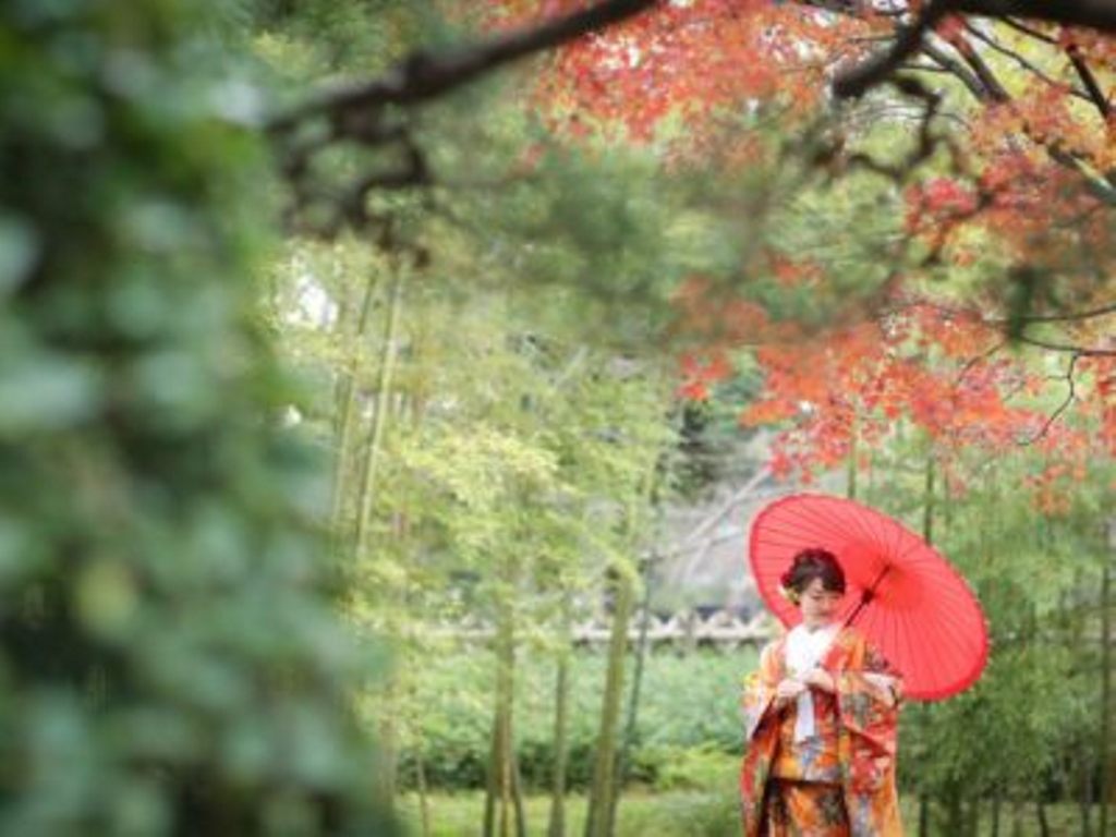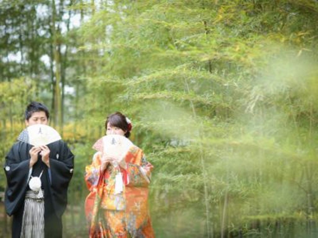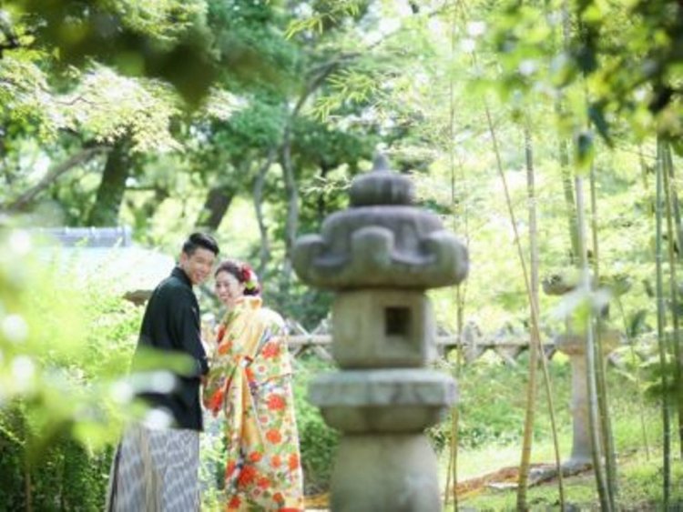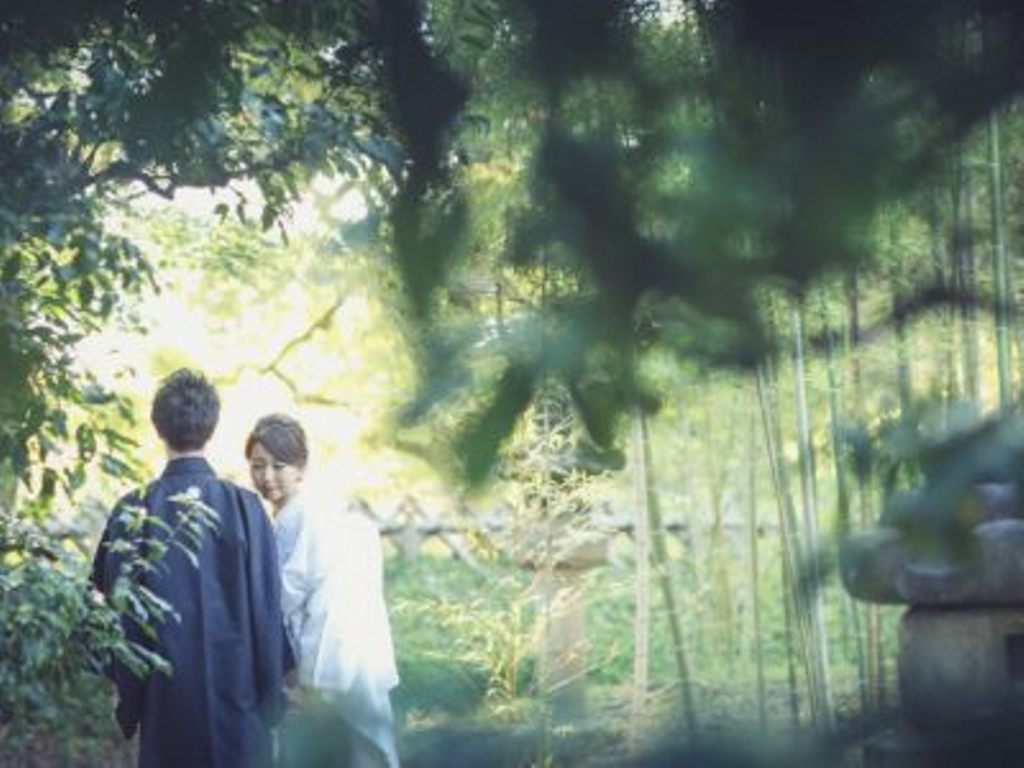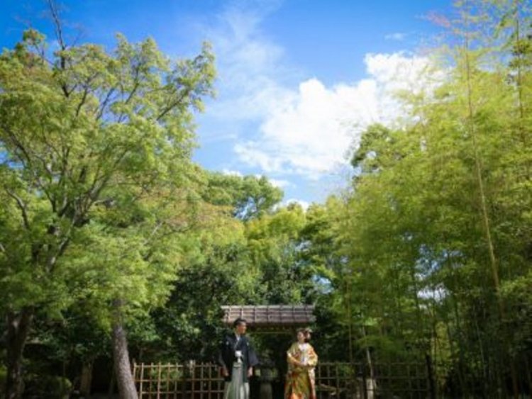 The park offers a perfect setting for pre-wedding photos, with Toin Chasetsu (tea house), Fragrance Garden, and a memorial hall, all surrounded by a peaceful bamboo grove.