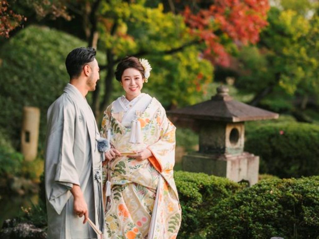 a romantic pre-wedding photo shoot at the breathtaking Higo-Hosokawa Garden awaits.