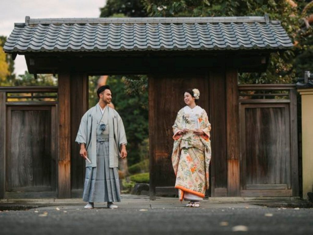 Shooting Data: 200 photos / Iro-uchikake (colored kimono) or Shiromuku (white kimono) / Montsuki (formal men’s kimono) / Hair & makeup / Art bouquet / Kimono dressing / Kimono accessories / Garland / Professional photographer / Hair & makeup attendant / Kimono dresser attendance / Photo selection / Location coordination