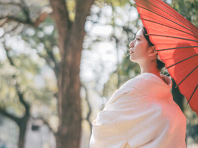 Cherry blossoms in spring and autumn foliage perfectly complement kimono looks, creating truly memorable photos.