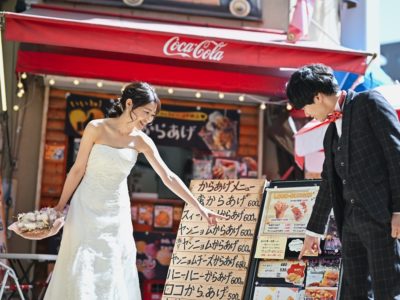 Today, we’re spotlighting pre-wedding photo shoots at Japan’s liveliest shopping street: Osu!