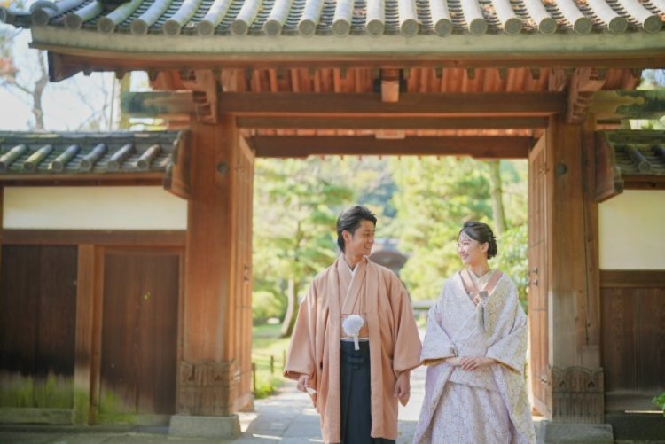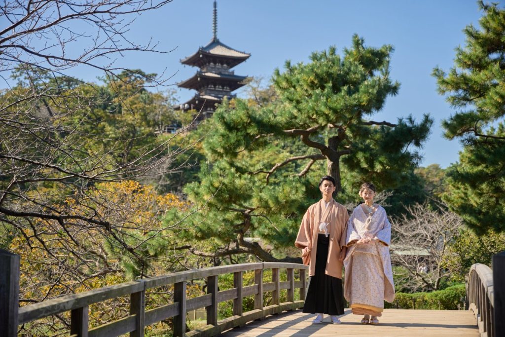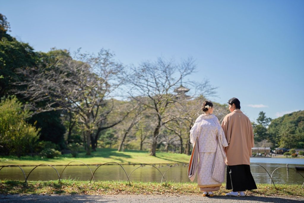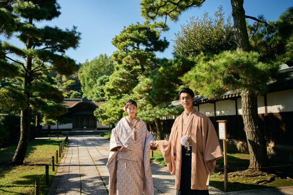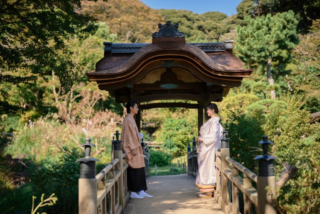 Sankeien’s pathways are beautifully maintained, allowing for warm, intimate photos as you stroll hand-in-hand.