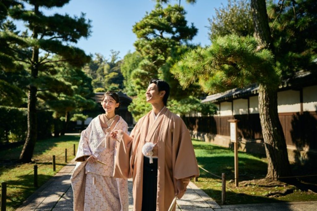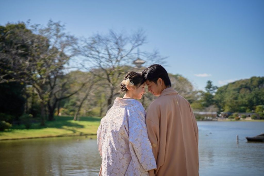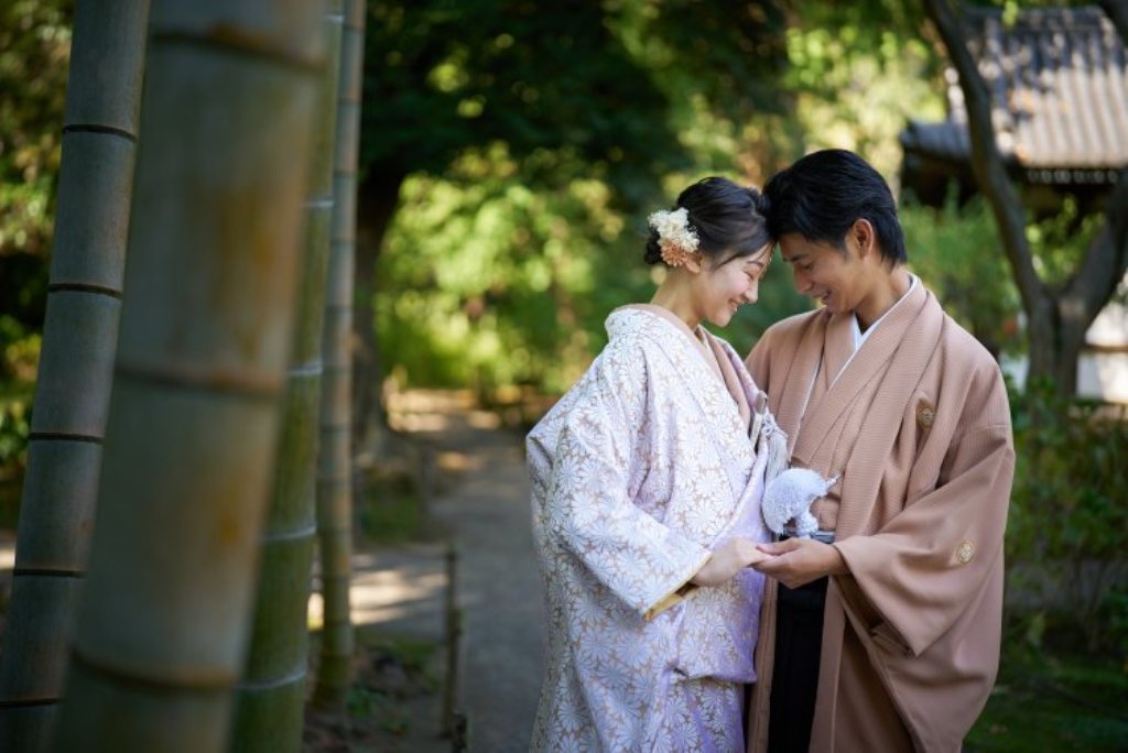 Sankeien’s pathways are beautifully maintained, allowing for warm, intimate photos as you stroll hand-in-hand.