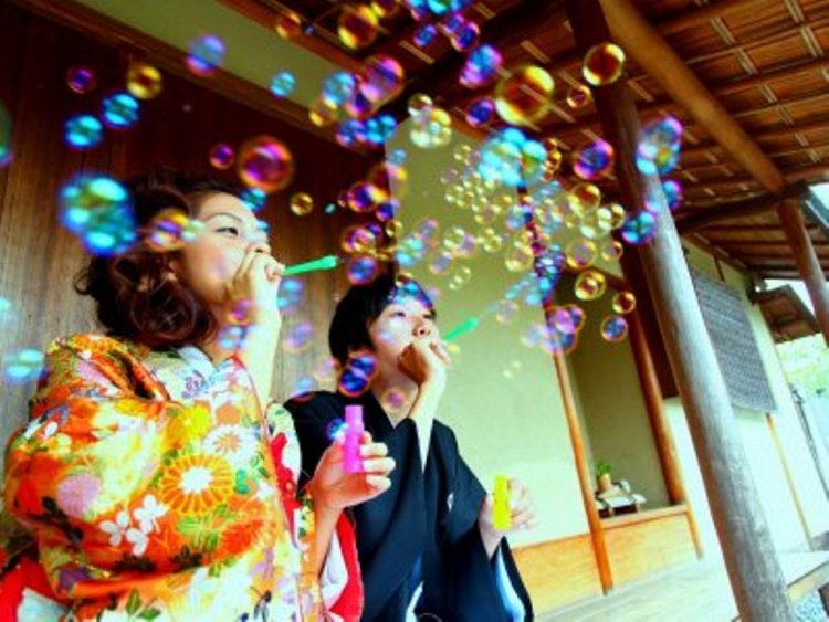 It feels like you’re on a date wearing traditional kimono, or as if you’ve time-traveled and met each other for the very first time.