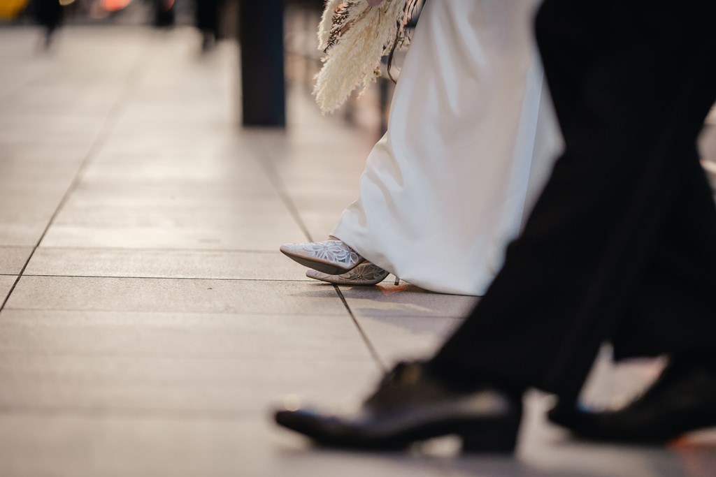 Close-ups of your feet in motion—a trending pose—symbolize walking forward together and create very touching photos.