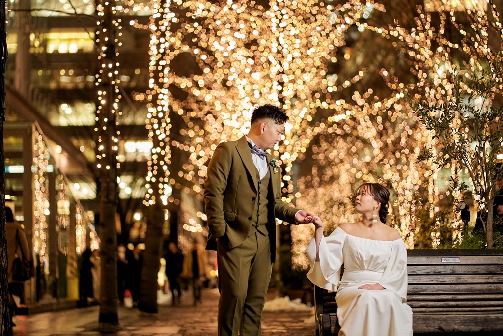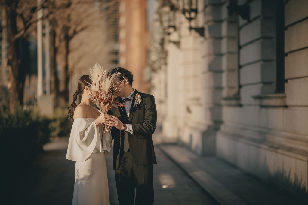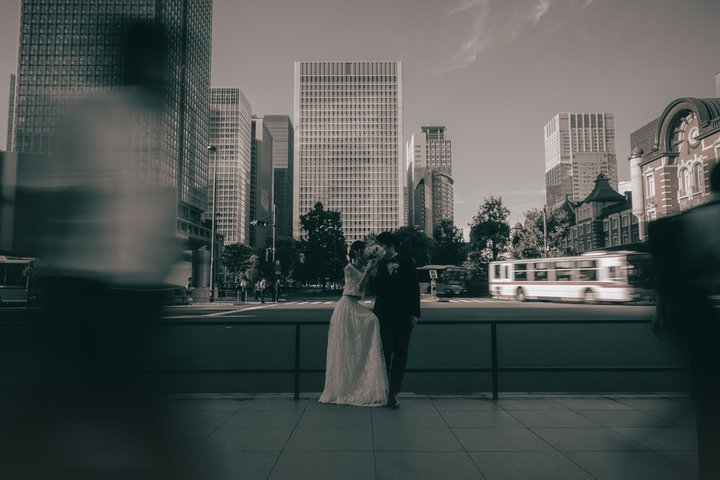 Nuanced shots featuring your bouquet, rings, or city background also work beautifully with Marunouchi’s stylish streetscape.