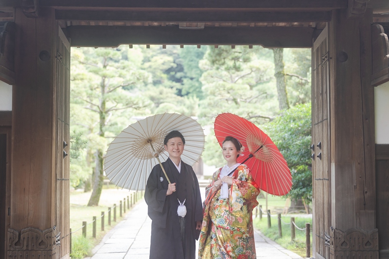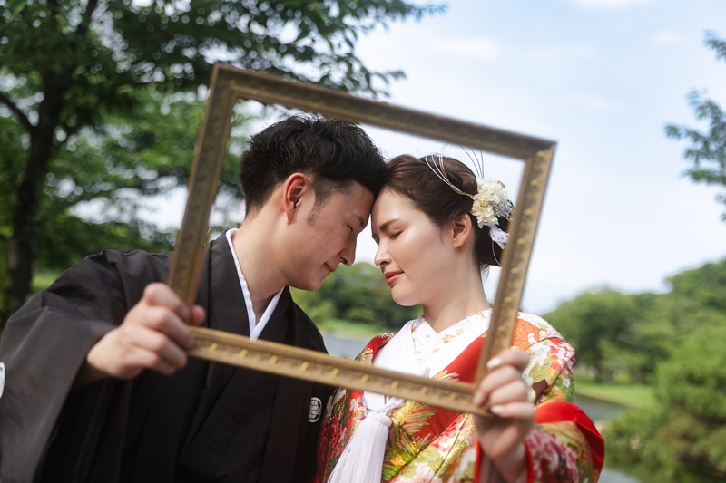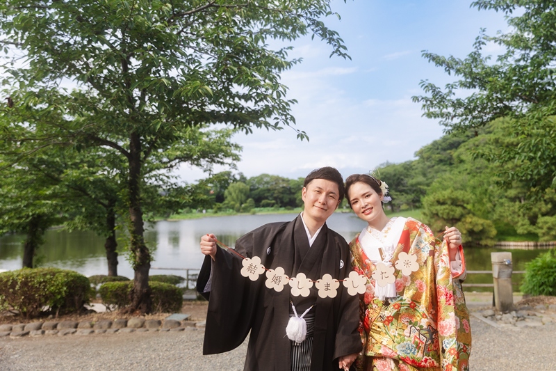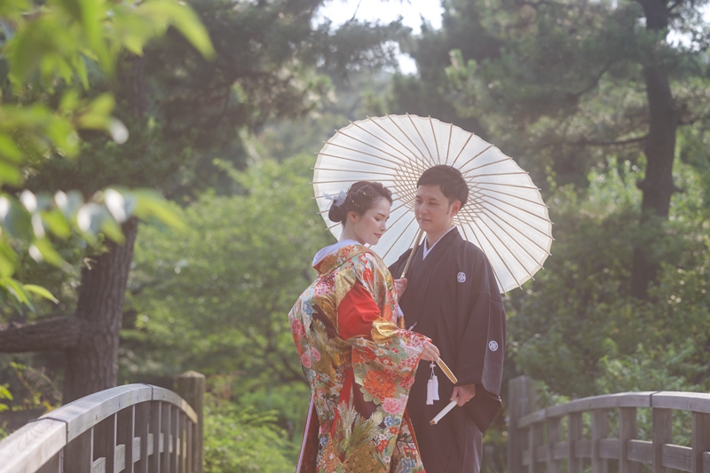 Although it was quite warm, we’re so glad to hear that you were able to enjoy the shoot!The red iro-uchikake suited you perfectly, and it looked stunning against the vibrant green of the garden and the bright blue sky.