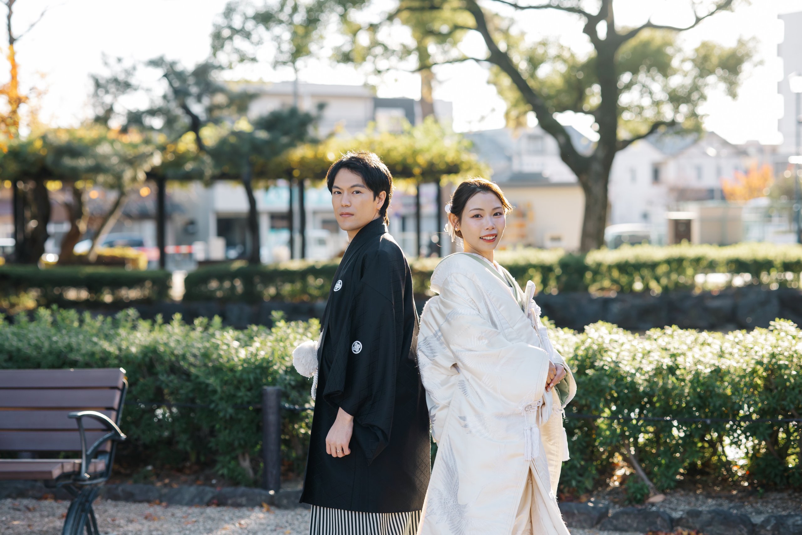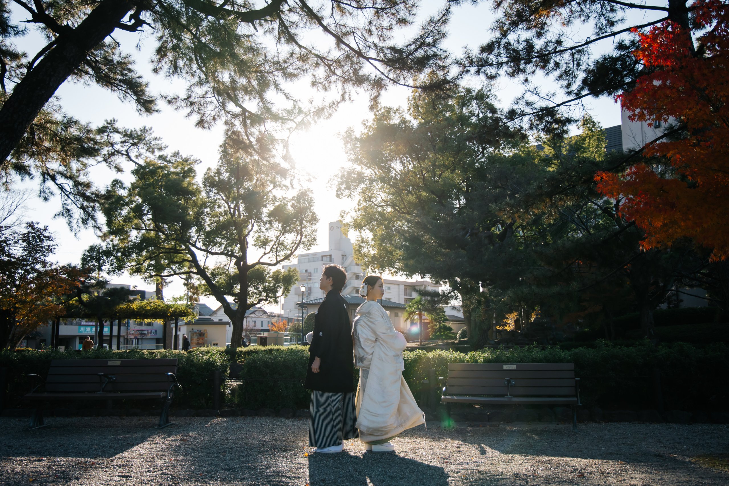 For the kimono location, we were able to shoot in Nakamura Park with a variety of backgrounds with little distance to travel, and because it was a weekday and there were few people there, there was little waiting time and the shoot went smoothly. - FROM