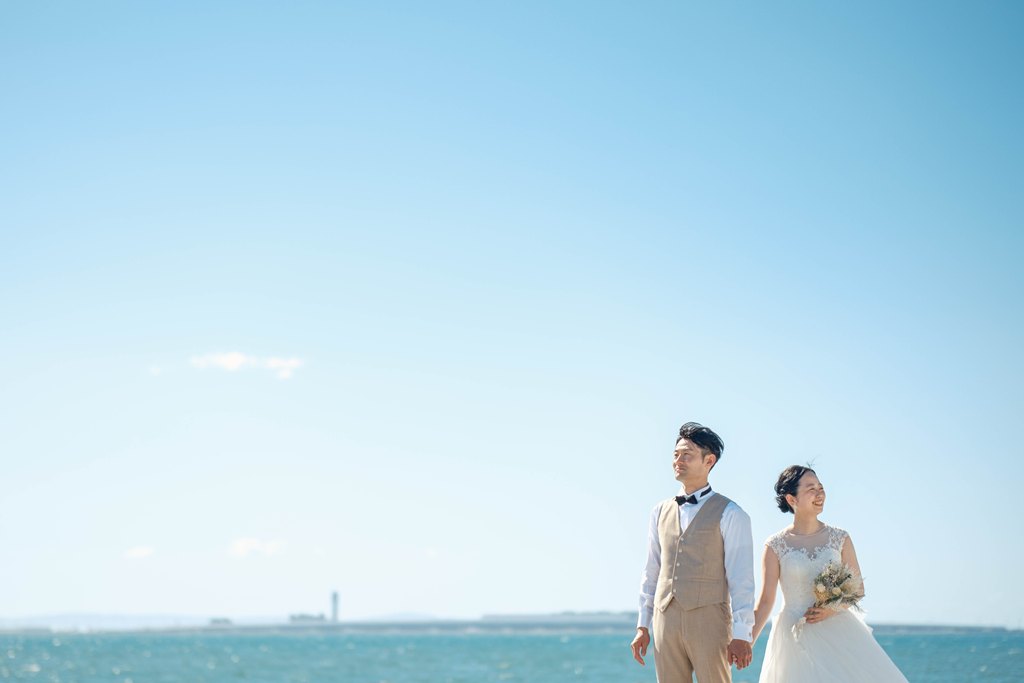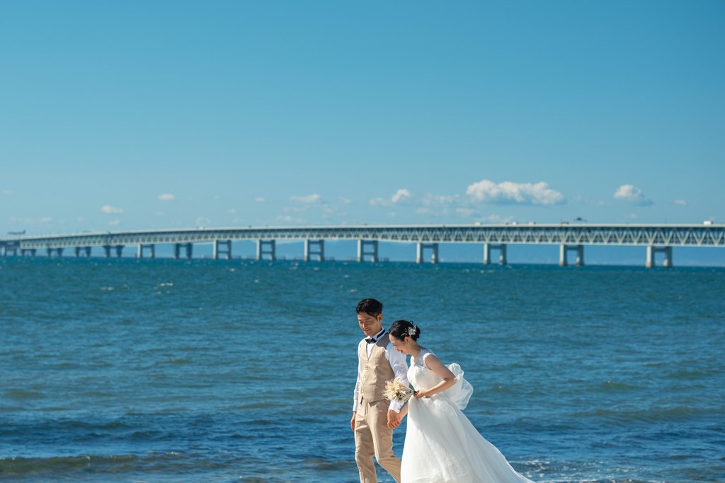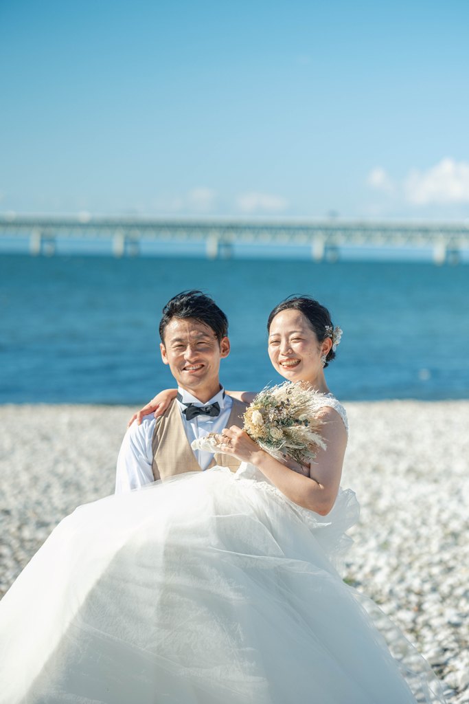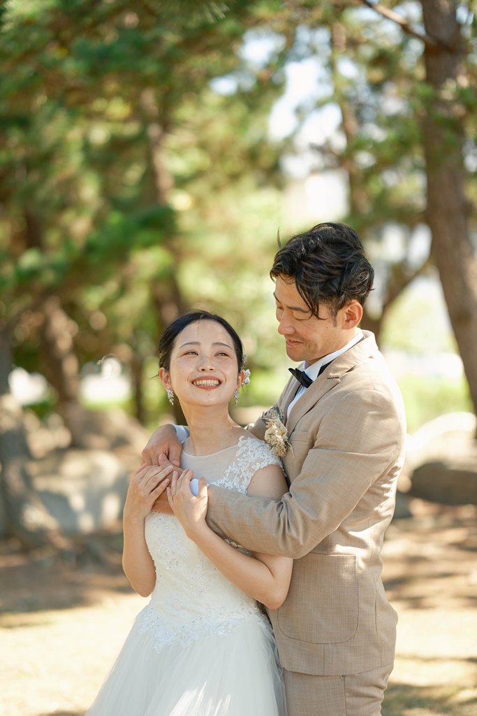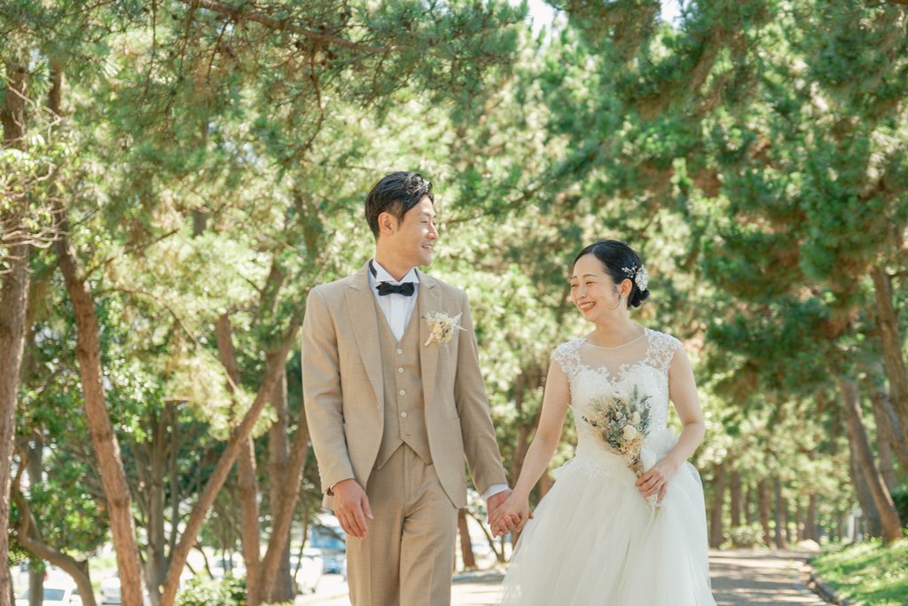 From the moment you stepped onto Marble Beach, the beautiful scenery of white stones and blue sea spread out before you, creating a magical, otherworldly space where your smiles shone even brighter. The sound of the waves and the gentle sea breeze, combined with natural light highlighting the beauty of your outfits, made every moment of your shoot perfectly photogenic.Our entire staff devoted themselves to capturing your natural expressions and the warm glances you shared with each other. Every smile, every joyful moment, and every scene set against the calm ocean will surely remain as a treasured memory.