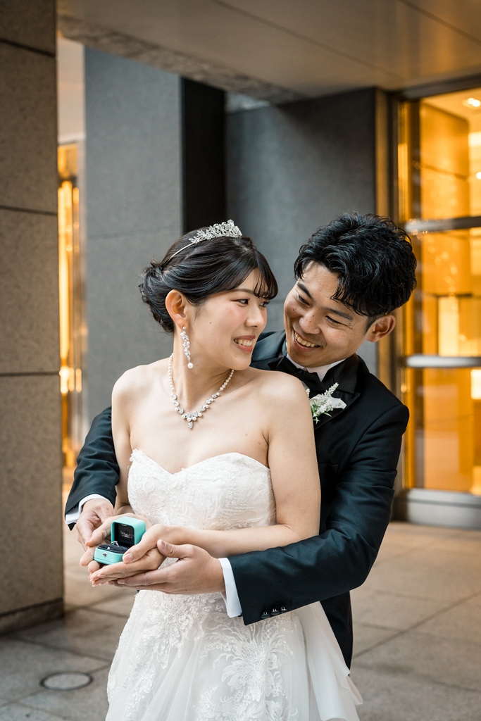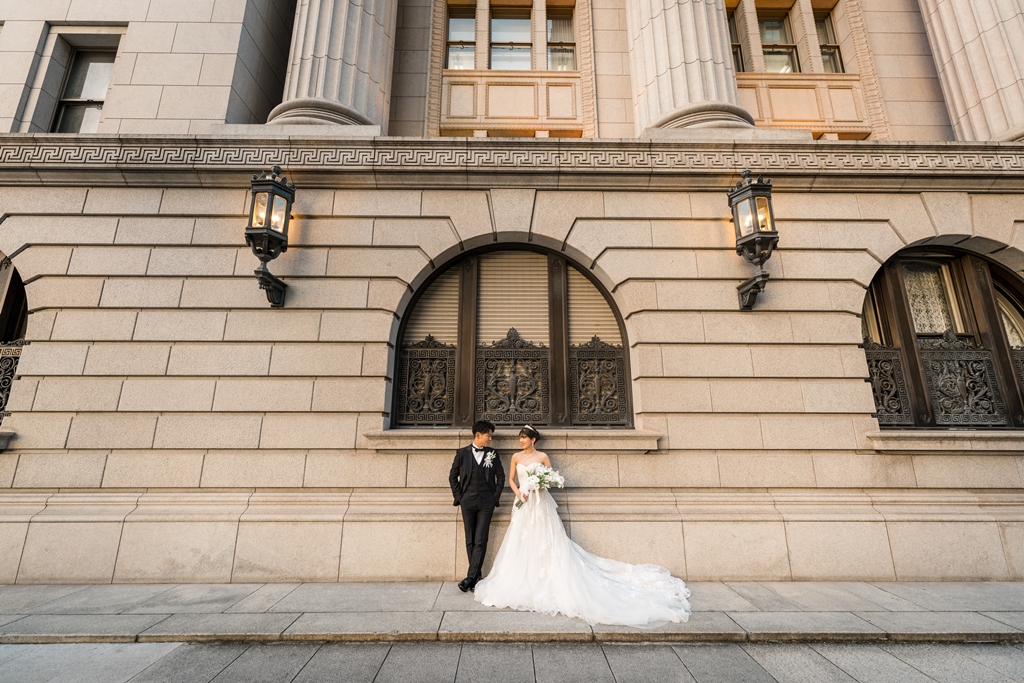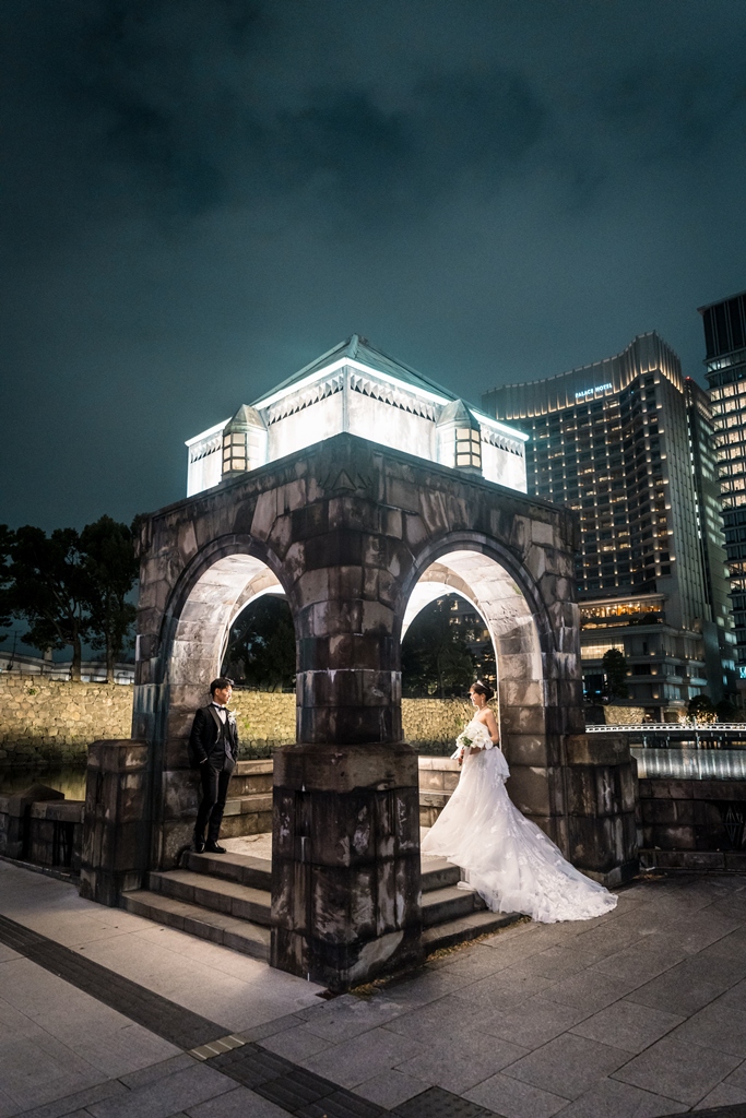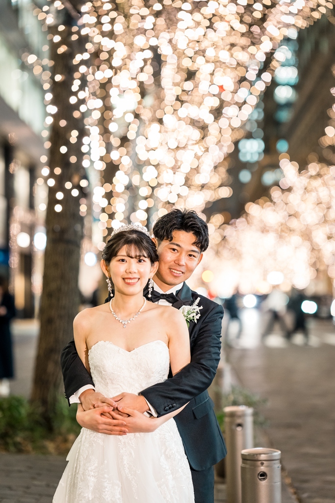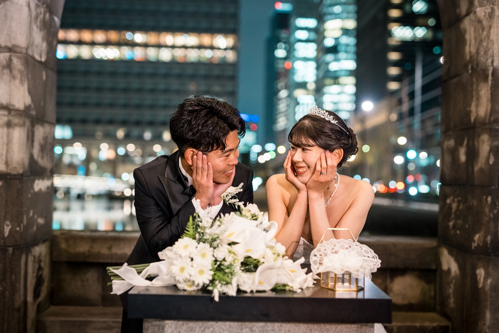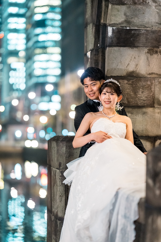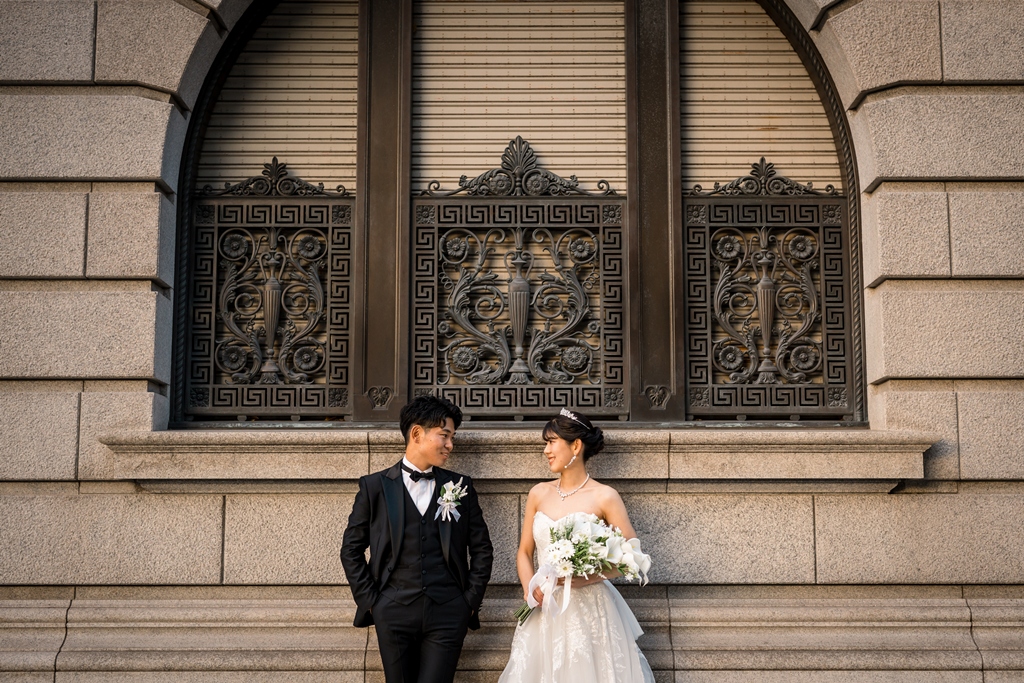 Thank you for your hard work during your Western-style location photoshoot at Tokyo Station. The bride’s wedding dress, with its sophisticated design and elegant silhouette, was stunning and harmonized perfectly with her gentle smile. The groom looked so refined in his tuxedo; together, you both looked like a glamorous scene from a movie. The historic beauty of Tokyo Station’s red brick architecture and the modern cityscape further enhanced your Western attire. The soft natural light during the day, the warm light at dusk, and the nighttime illuminations dramatically colored your special moments. Throughout the photoshoot, your natural gestures and happy smiles radiated the anticipation of a bright future together, and our staff wholeheartedly captured each moment. The finished photographs will undoubtedly become cherished treasures, beautifully depicting your precious story. We sincerely hope you enjoy sharing these special memories with your family and friends for years to come. We are deeply grateful that you entrusted our studio with your Western-style photoshoot at Tokyo Station from among many options. Our entire team sincerely wishes you both a future filled with happiness and radiant smiles, just like today.