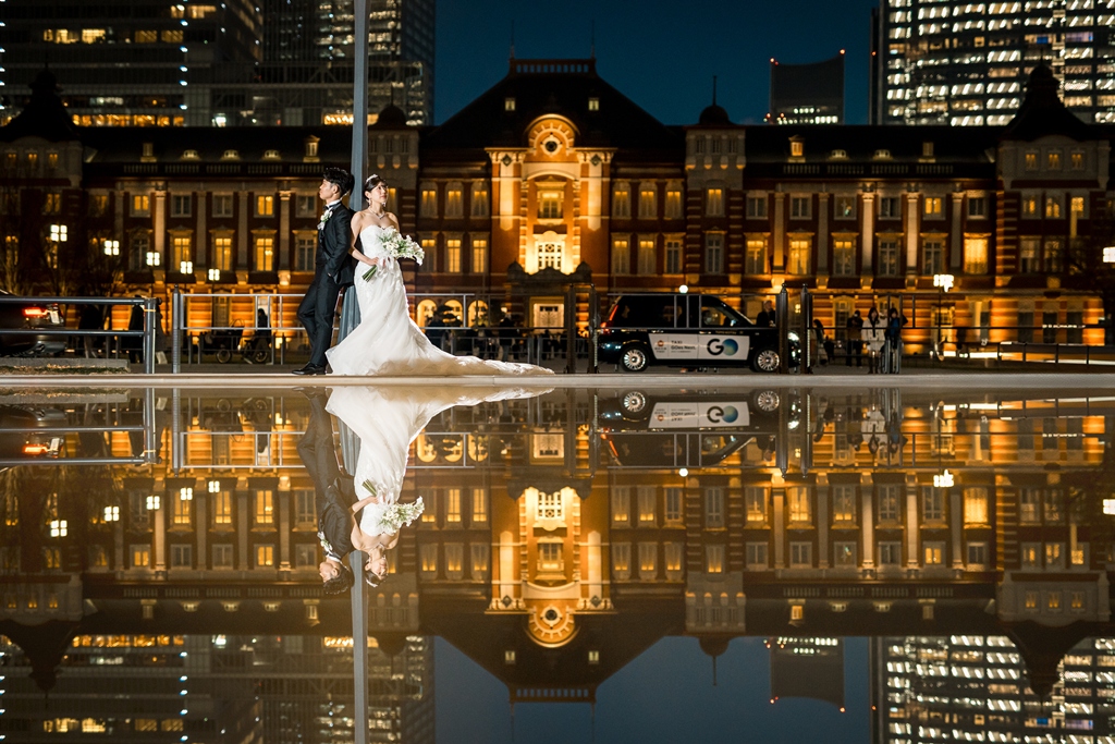 Best pre-wedding photos: city night & classic Tokyo Station.