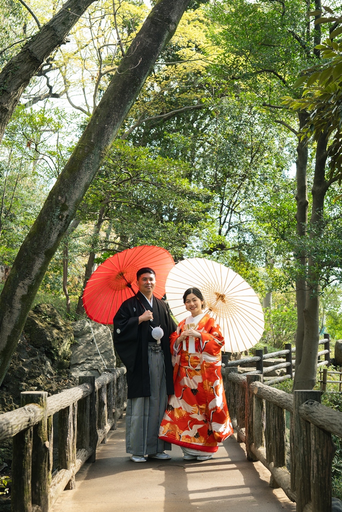 In the serene and elegant setting of Arisugawa-no-miya Memorial Park, your traditional Japanese attire blended beautifully with the natural surroundings, creating scenes that truly captured the essence of timeless Japanese beauty.