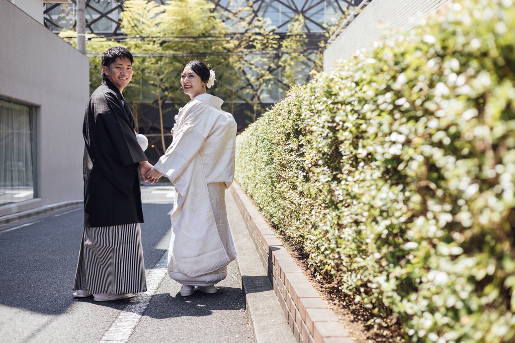 - We chose to do the shoot entirely in Japanese attire. Thanks to the thoughtful attention of the hair & makeup artist, the dresser, and the photographer, we were able to enjoy the session comfortably even in the summer heat.