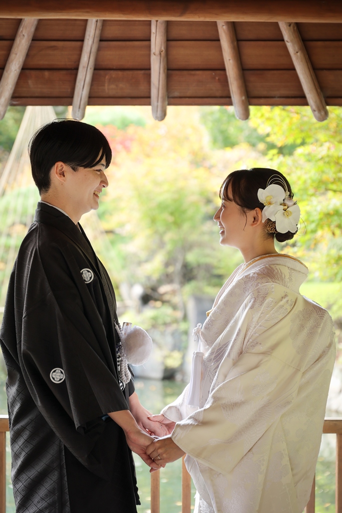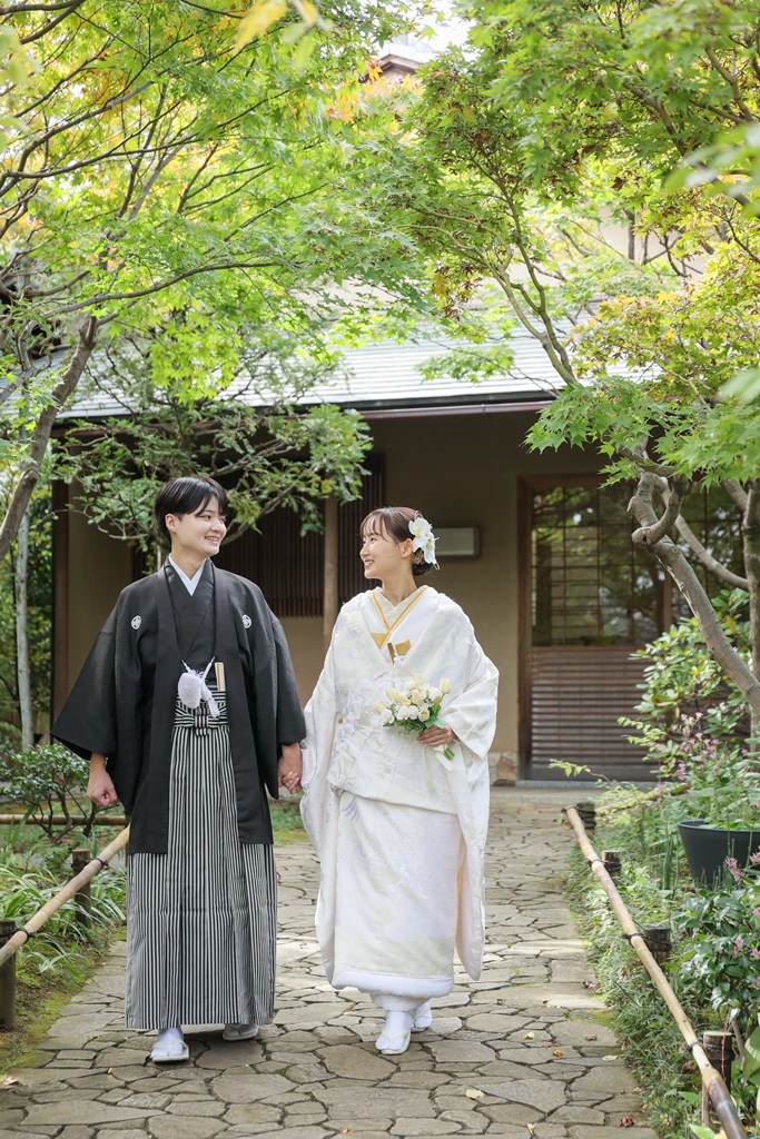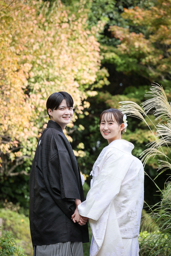 Thank you sincerely for entrusting us with such an important day.The quiet and refined atmosphere of Mejiro Garden is a truly special setting where the beauty of traditional attire is naturally enhanced. Seeing the two of you standing side by side in kimono was incredibly elegant, and it felt as though a calm and gentle time was flowing throughout the garden.