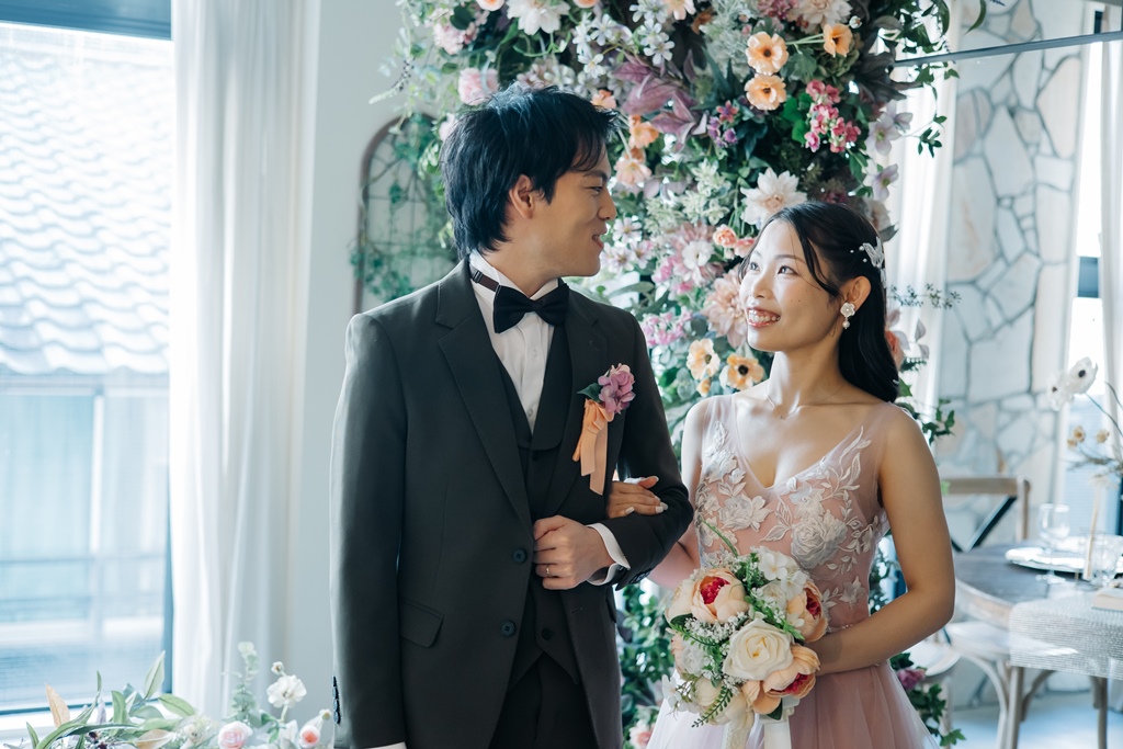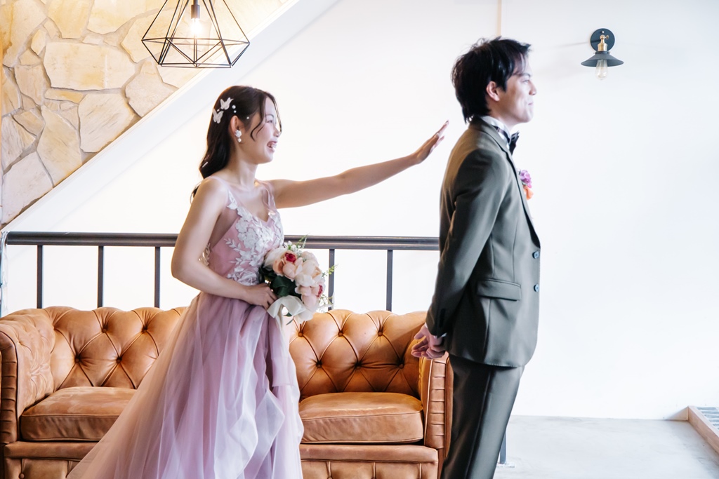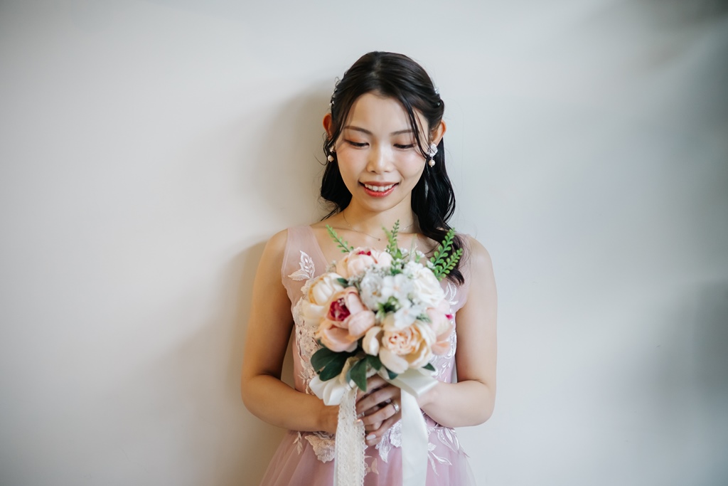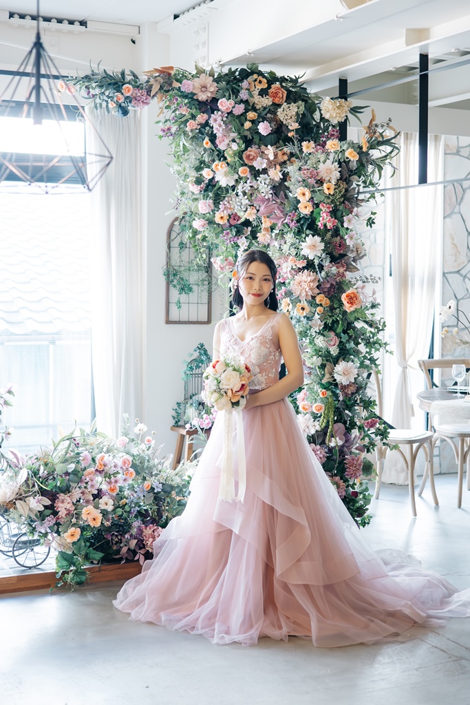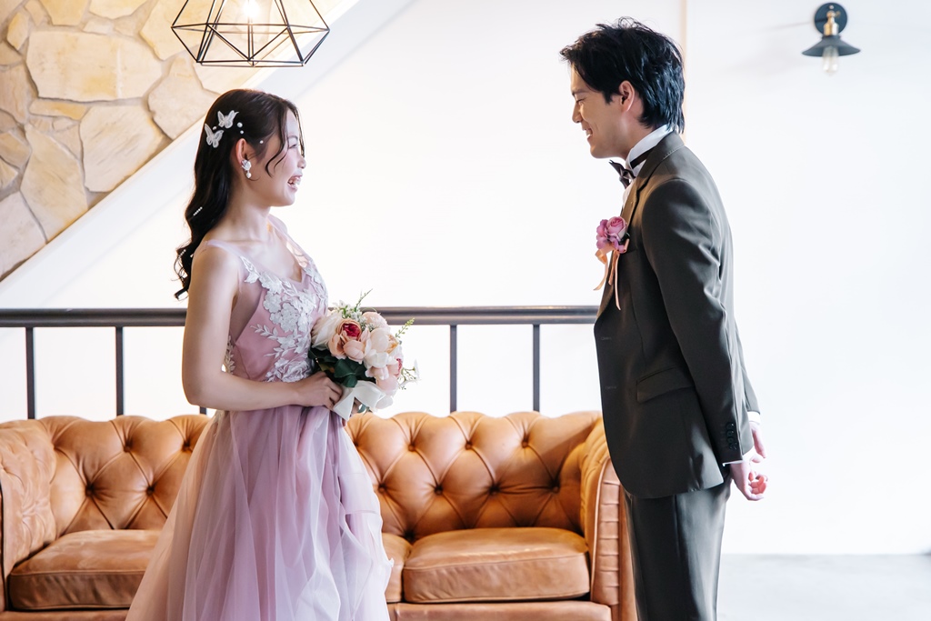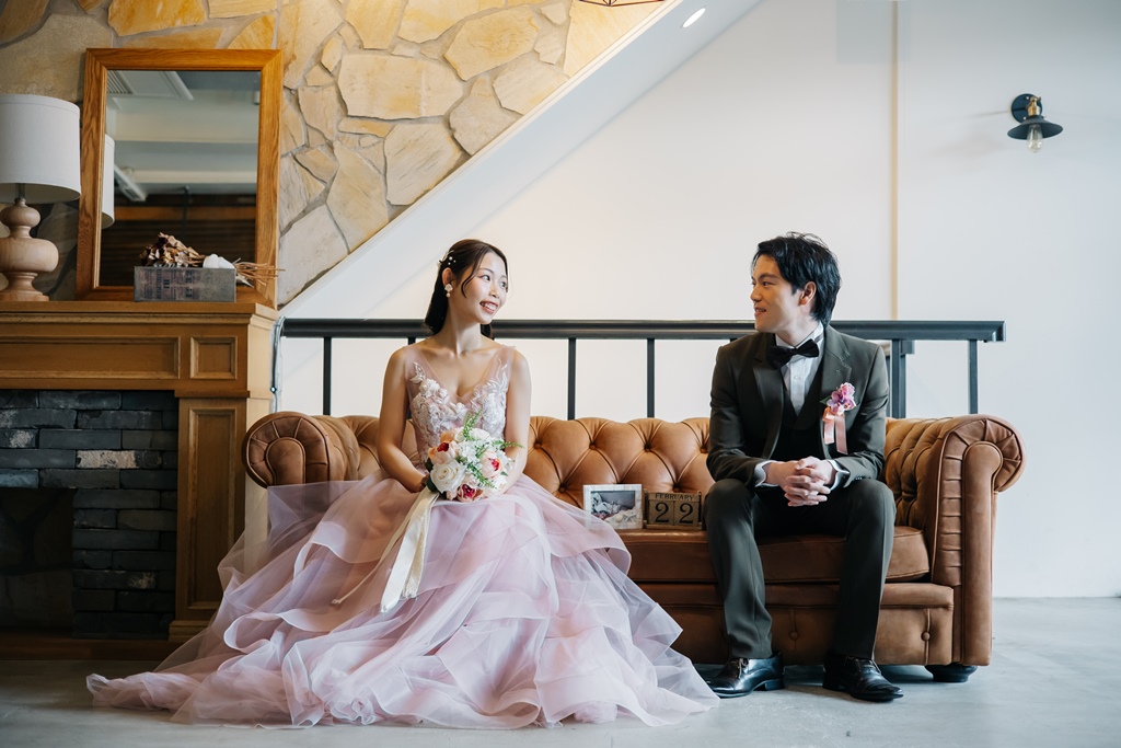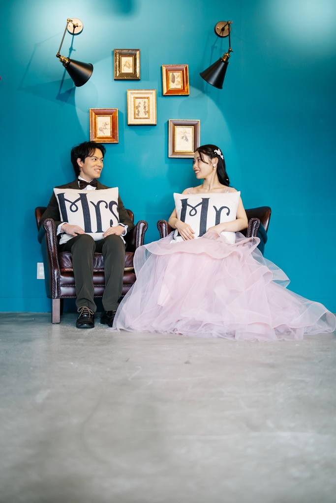 Colored dresses that look great in a trendy white background studio! | Pre-Wedding Photography in Japan | WEDDING AVENUE