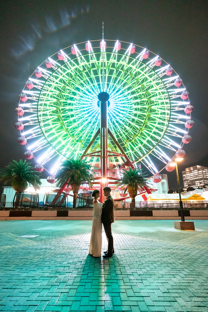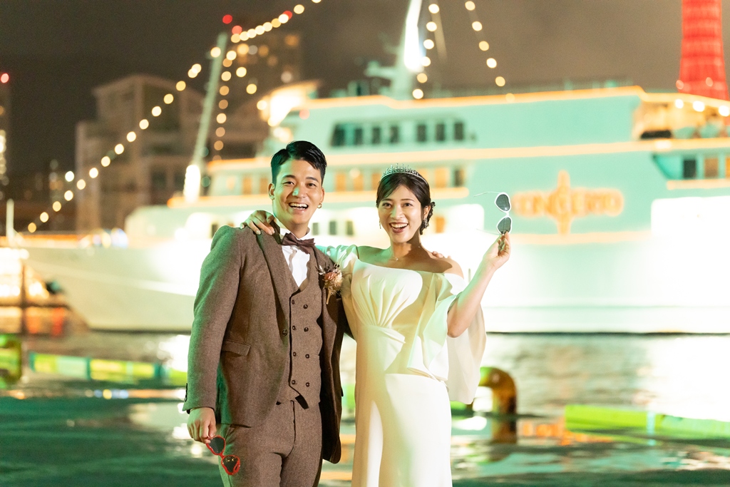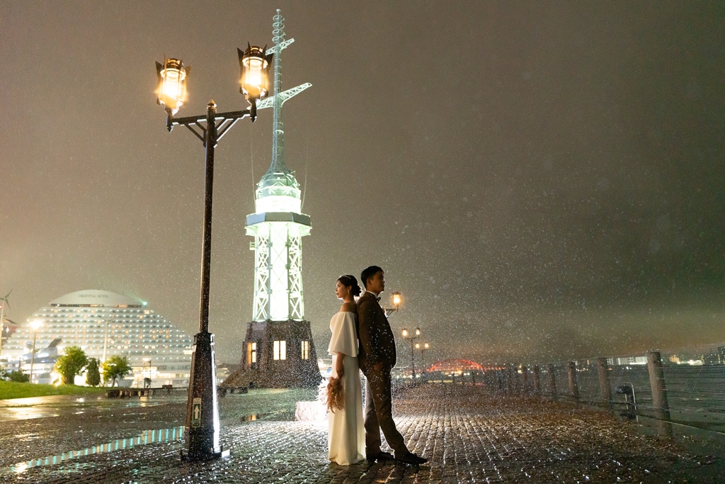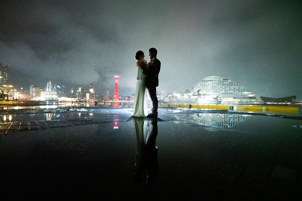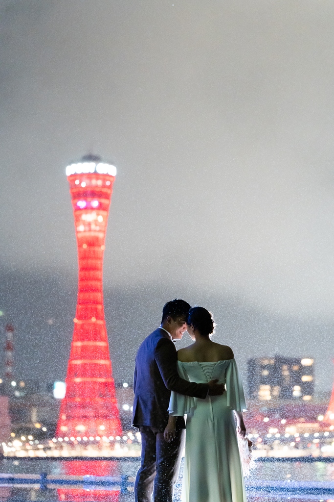 The sea breeze from Kobe Port gently swept through your dress, and as the red brick warehouses and Mosaic’s cityscape melted into the background, it felt as though your love story was resonating with the spirit of the city itself. Under the watchful gaze of the Port Tower and the iconic Ferris wheel, your shared smiles and gestures were filled with a joy that words simply cannot describe.