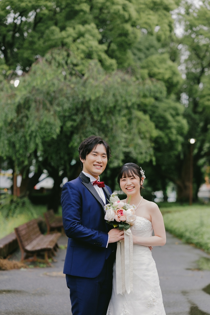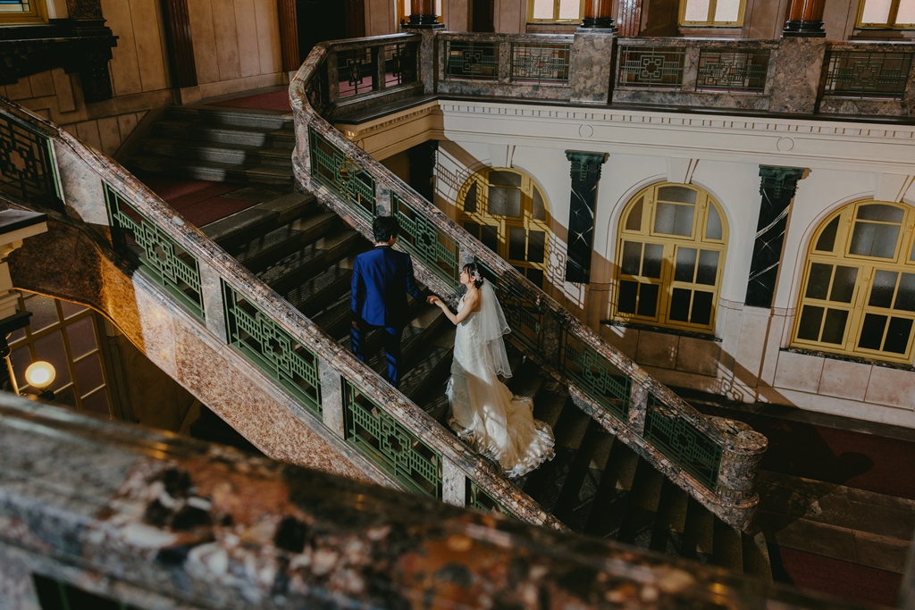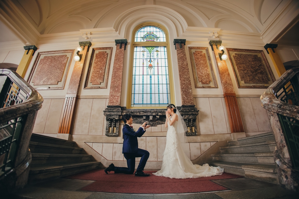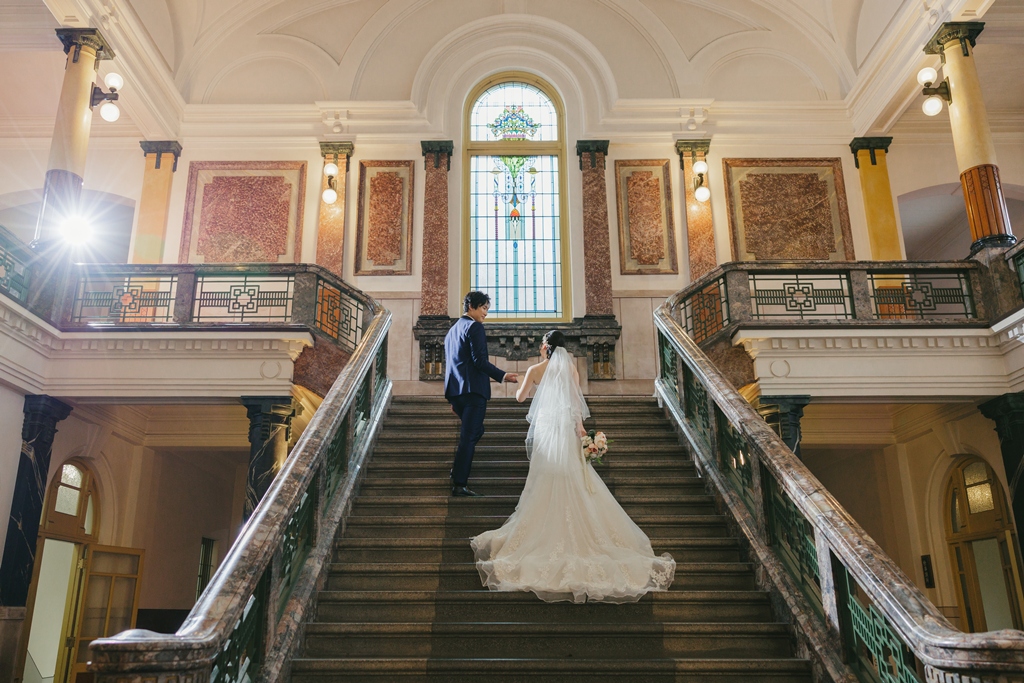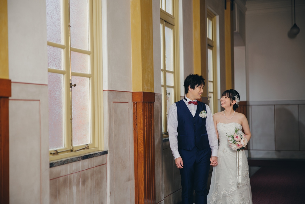 The building’s rich Taisho-era romance made the entire space feel like a scene from another time, almost as if we had stepped into a dream. Dressed in your gown and tuxedo, you both stood out like shining stars against this nostalgic backdrop.From the gentle glance exchanged at the top of the staircase, to the quiet connection beneath a grand column, to the soft touch of your hands by the sunlit window—each moment overflowed with the unique tenderness and bond you share. It was truly a joy for us to capture those emotions through our lens.