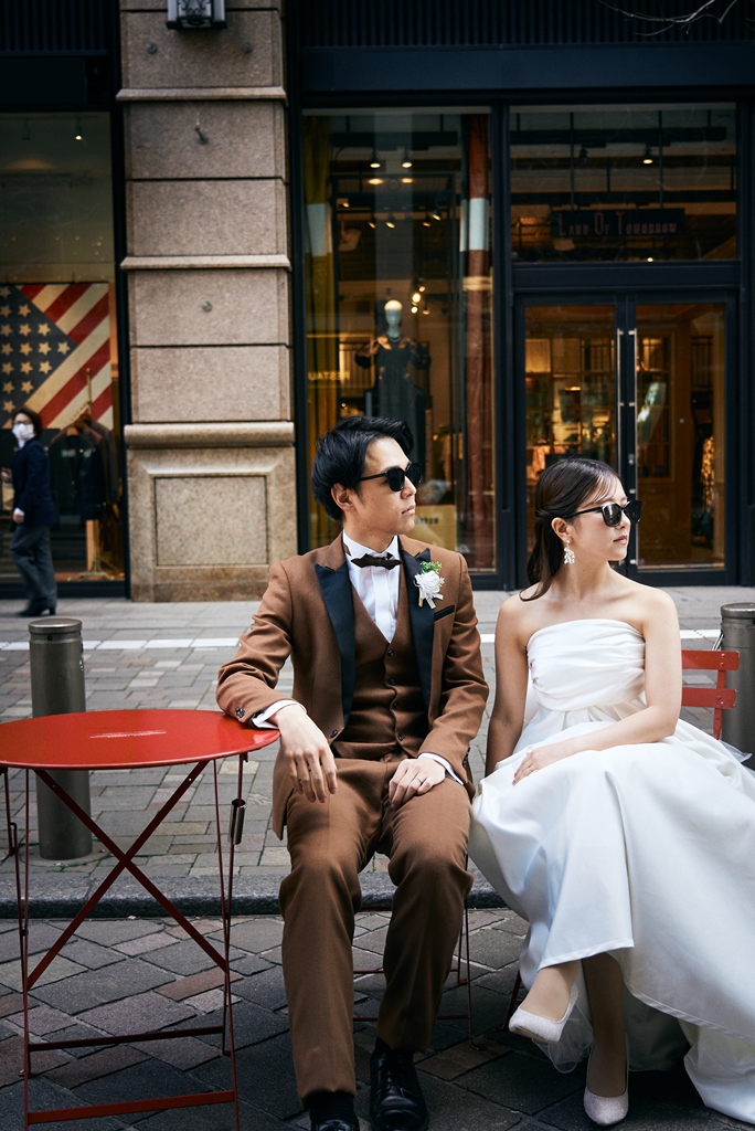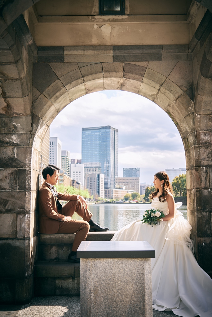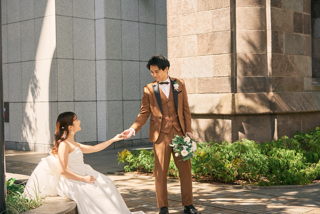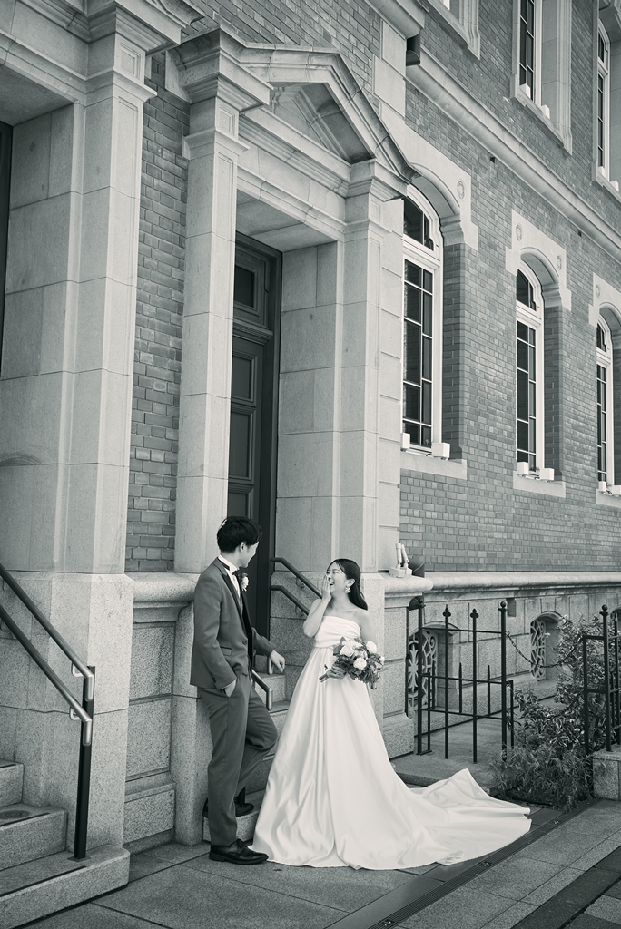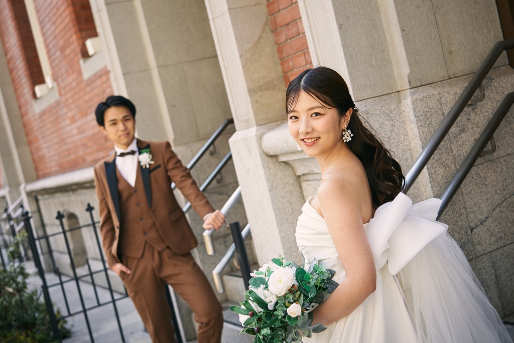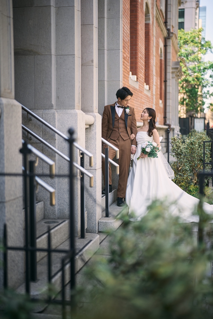 Tokyo Station’s red brick building stands as a symbol of history and elegance, while the surrounding Marunouchi district exudes modern sophistication. In this space where tradition and innovation meet, your presence in a wedding gown and tuxedo was breathtaking—like a scene from a movie. It captivated not just us, but everyone who witnessed it.