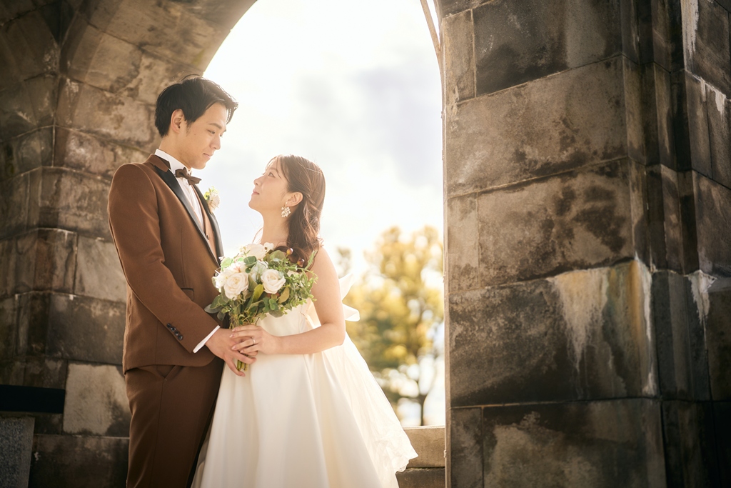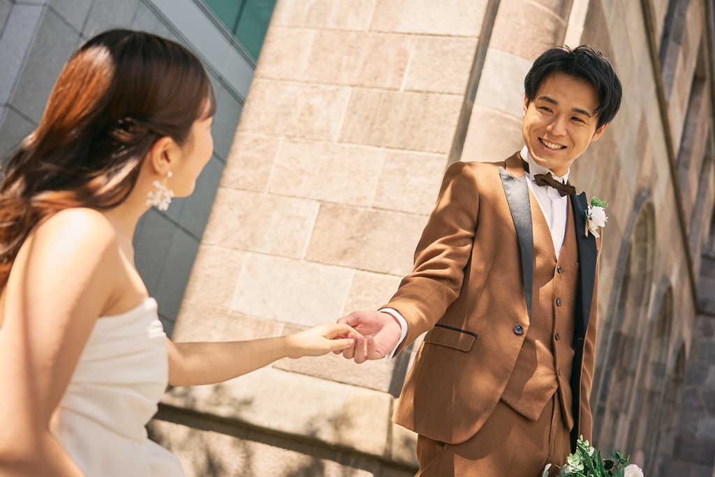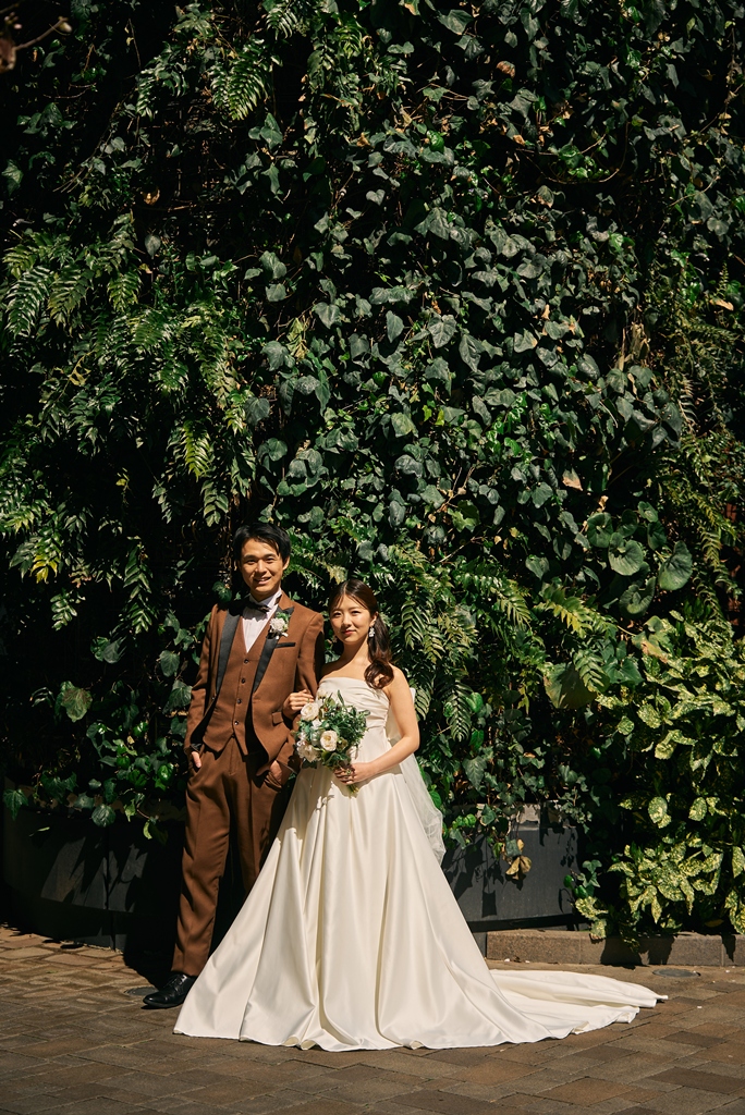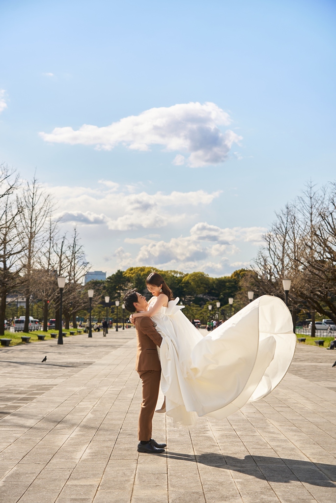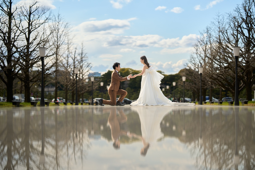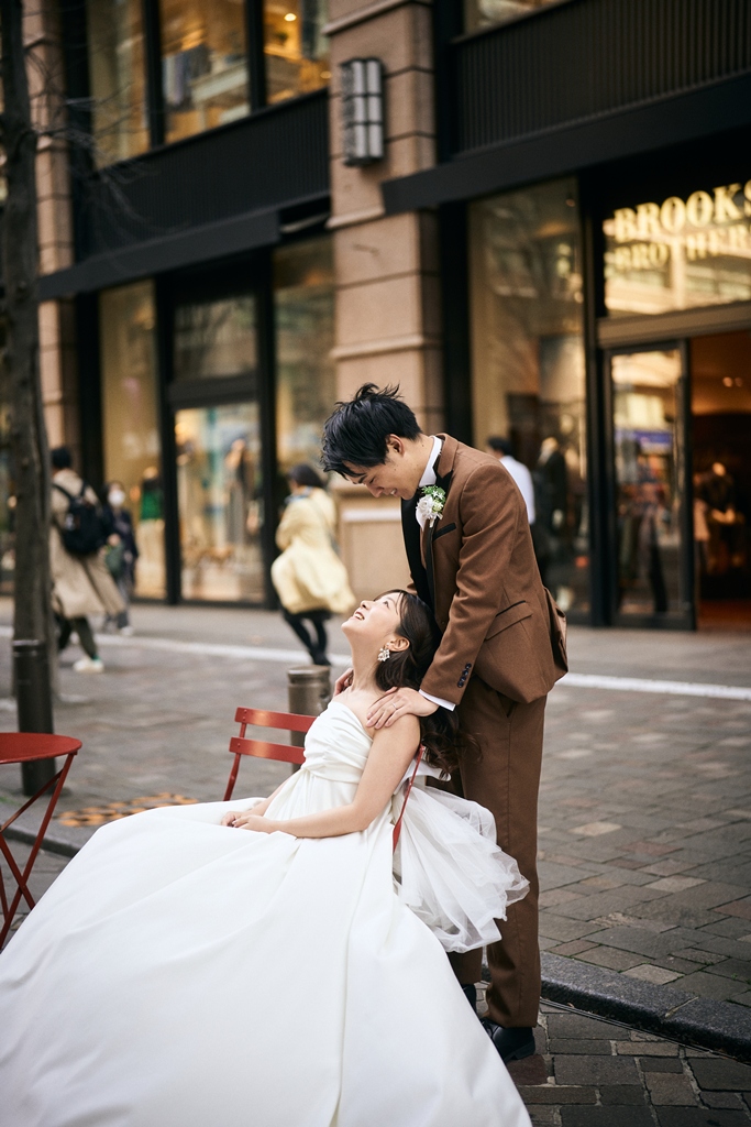 Tokyo Station’s red brick building stands as a symbol of history and elegance, while the surrounding Marunouchi district exudes modern sophistication. In this space where tradition and innovation meet, your presence in a wedding gown and tuxedo was breathtaking—like a scene from a movie. It captivated not just us, but everyone who witnessed it.