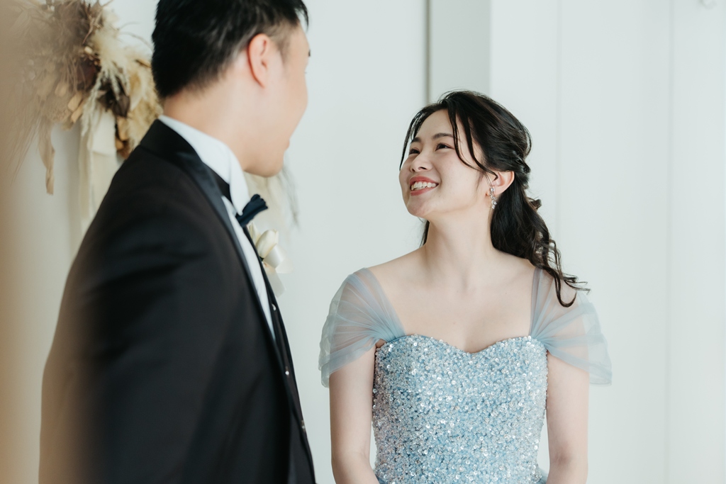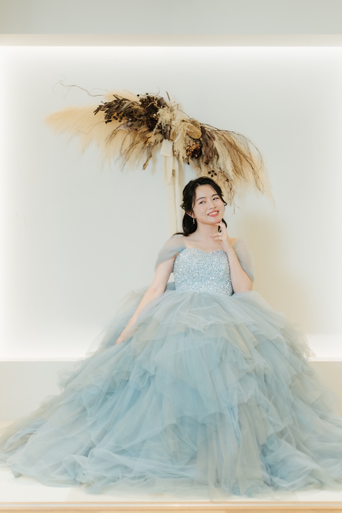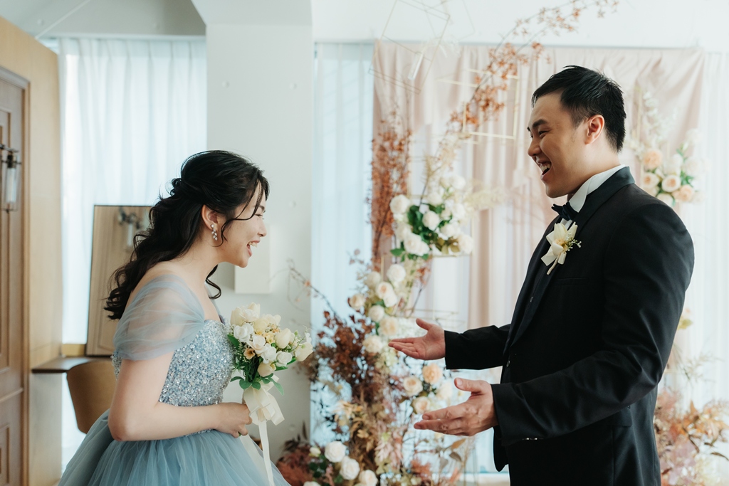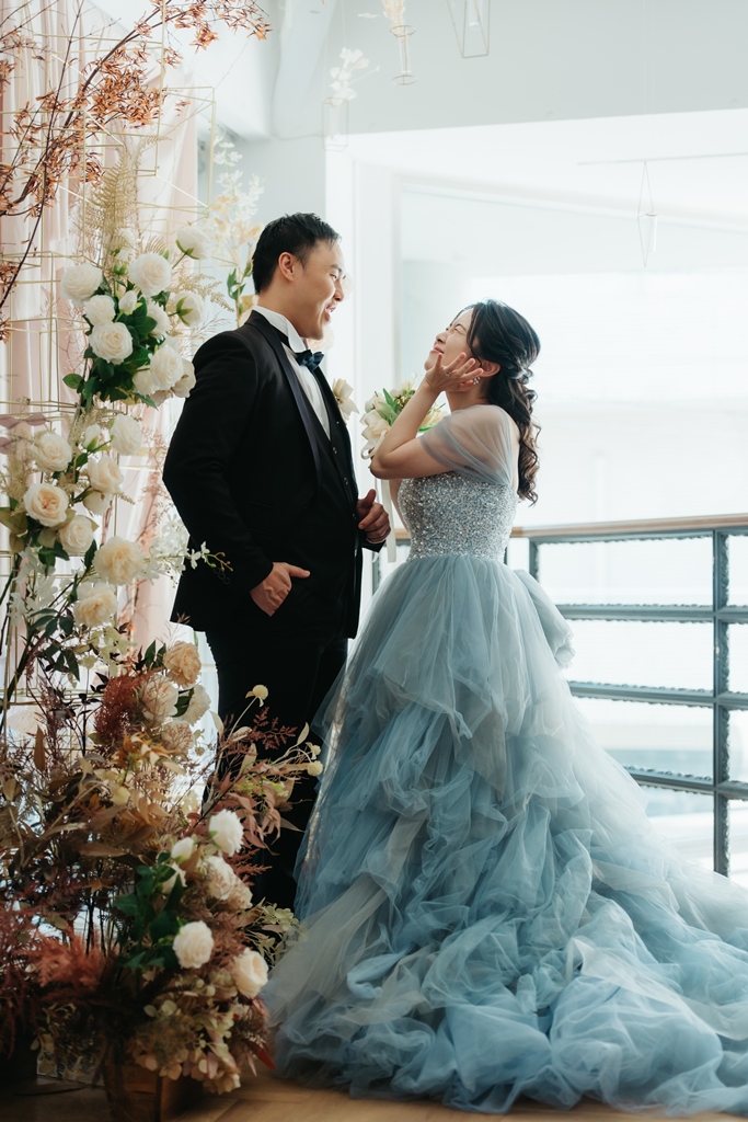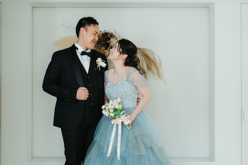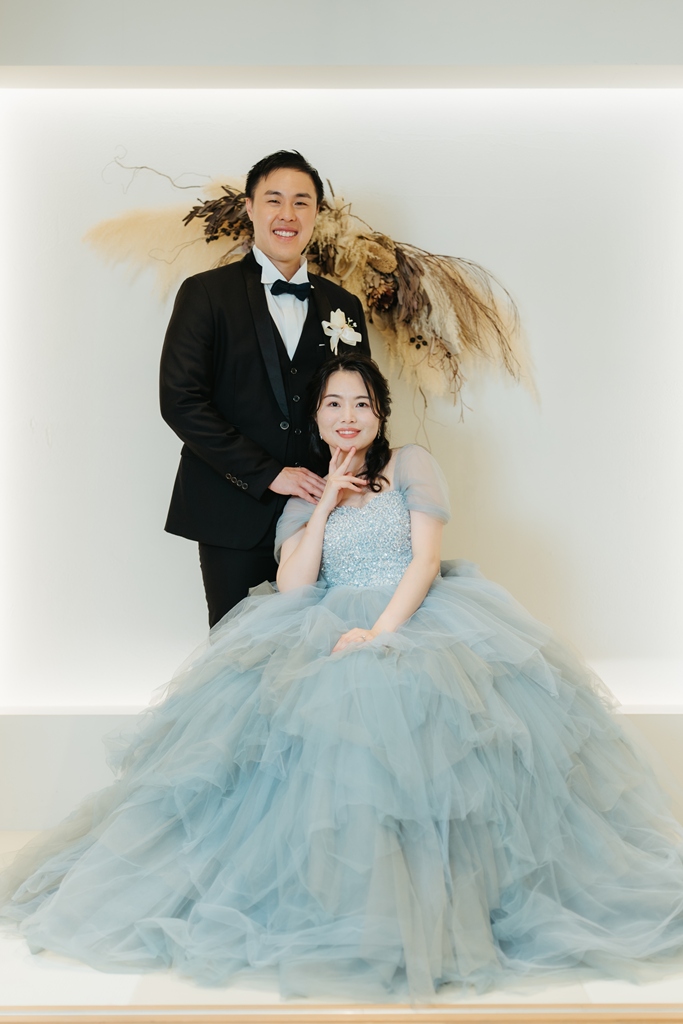 In the elegant studio, bathed in beautiful natural light, the way you looked at each other created moments of pure serenity — truly like a scene from a film.Minami-Aoyama is a place where sophistication and charm meet, and your presence in your gown and tuxedo blended seamlessly with the refined surroundings while radiating your own unique glow.