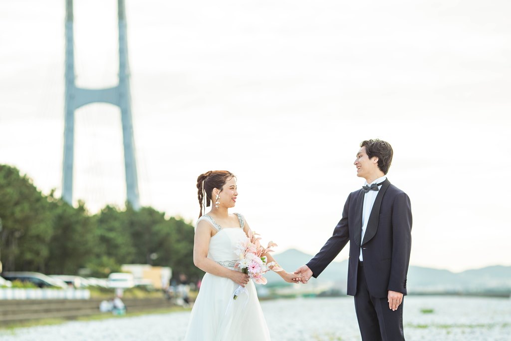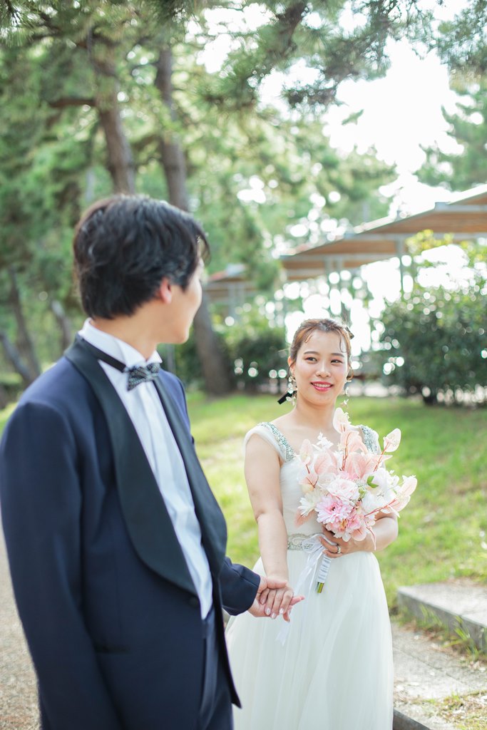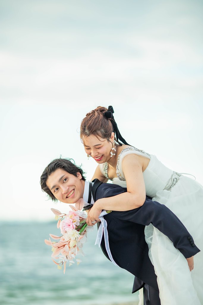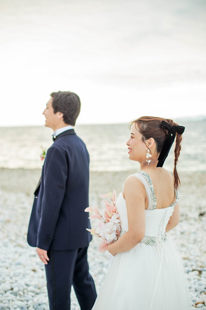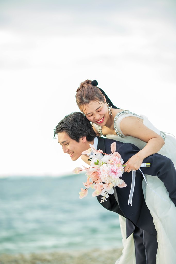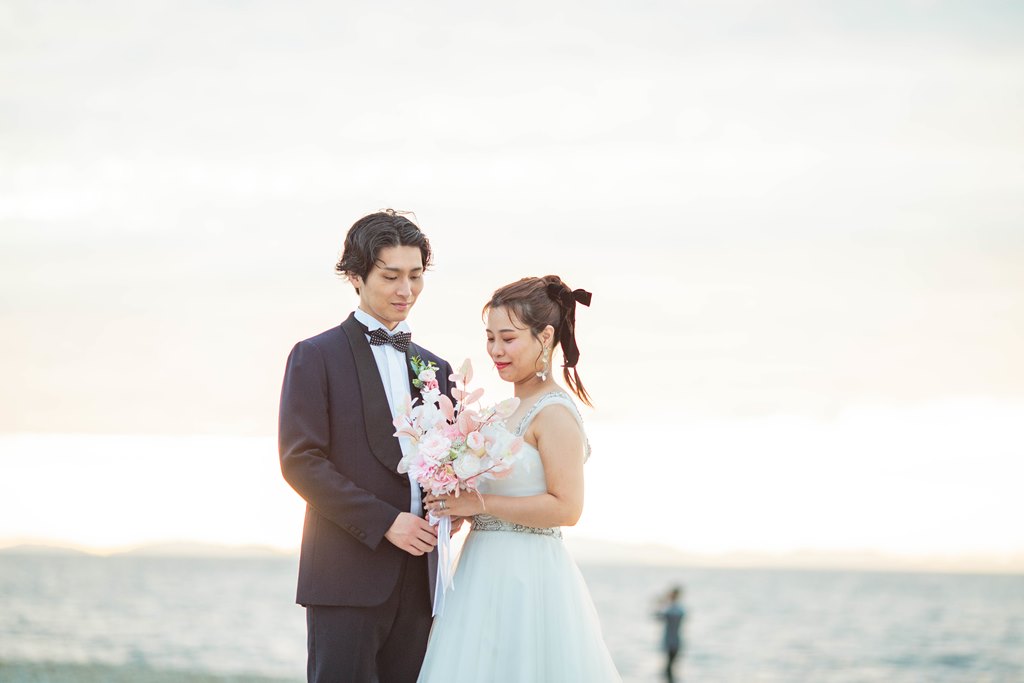 - First, we requested a pre-wedding shoot in traditional Japanese attire at the studio. After getting our hair and makeup done, putting on the beautiful outfits really lifted our spirits. The photographer and stylists created a warm atmosphere, allowing us to take many photos together. For our western-style shoot, we went to Marble Beach. They captured not just the beach scenes, but also took plenty of pictures in the waiting area and along the pathways, constantly thinking of the best poses and angles, which we truly appreciated! We were both a bit nervous about being photographed, but they made us laugh and adjusted our angles and expressions, creating wonderful memories from our shoot. We were also delighted to have beautiful sunset shots during the session.