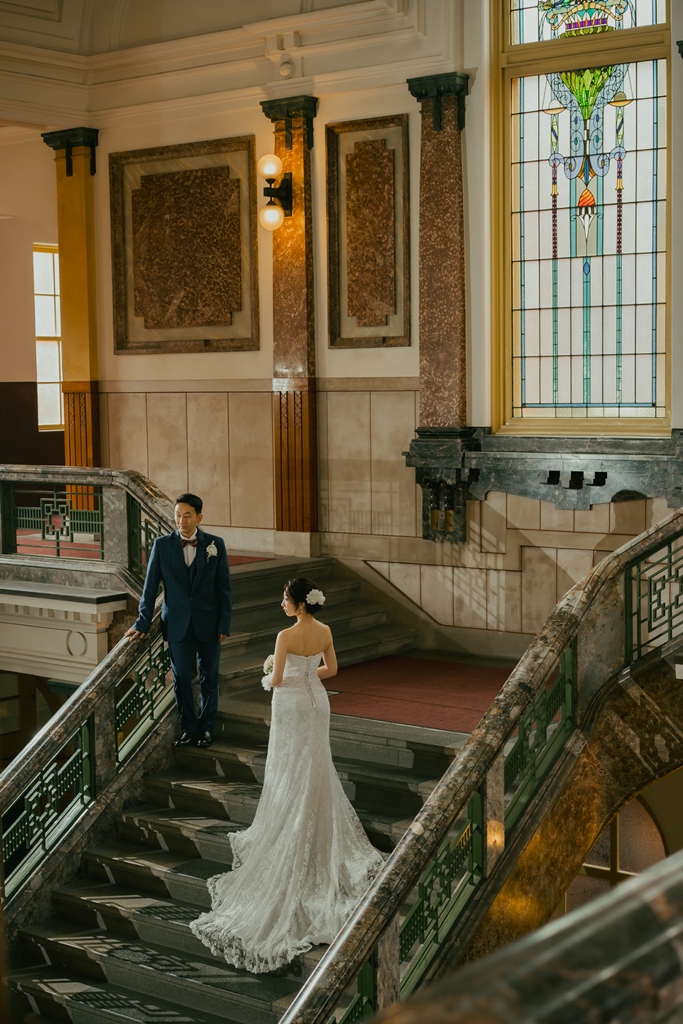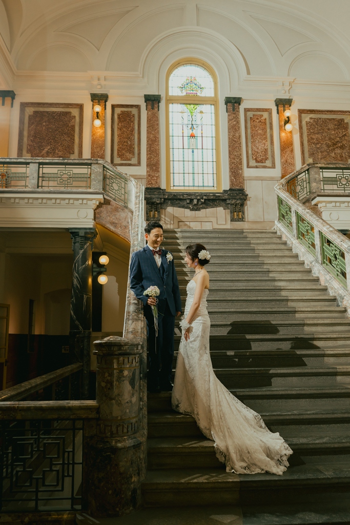 The harmony between the historic architecture and the classic dress created timeless moments that felt like scenes from a story.The way you looked into each other’s eyes, the smiles you shared so naturally—these expressions reflected both the dignity and warmth of the space around you.