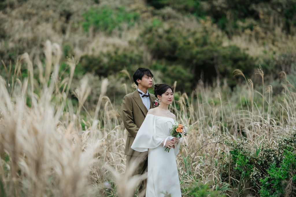 Jogashima is more than just a beautiful location—it’s alive with the scent of the ocean, the breath of nature, and the ever-changing wind. Standing in the middle of it all, the two of you looked like the stars of a cinematic love story. Every natural smile, every glance exchanged—it all turned effortlessly into art.