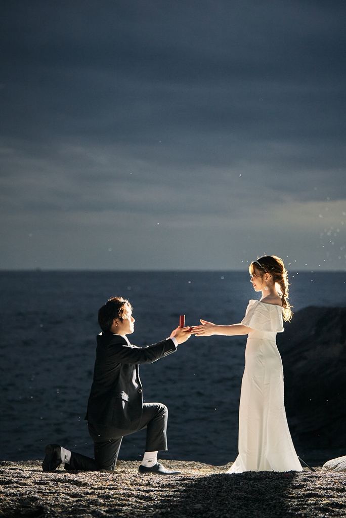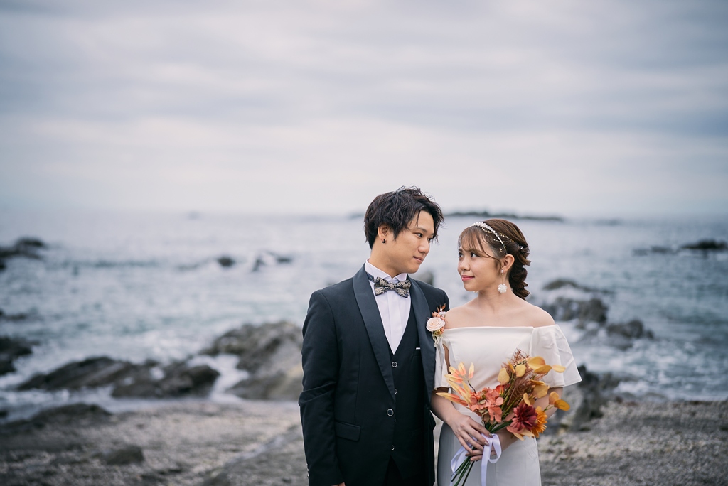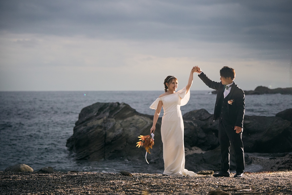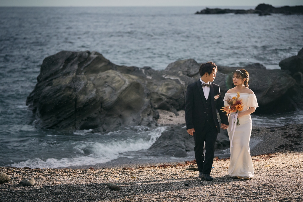 It was a true honor for our team to accompany you on such a special day, surrounded by the wide open sea and the powerful beauty of nature.Jogashima is a breathtaking location where the sound of the ocean breeze, the rhythm of the waves, the soft glow of the evening light, and the dramatic cliffs all come together to create a truly cinematic atmosphere.