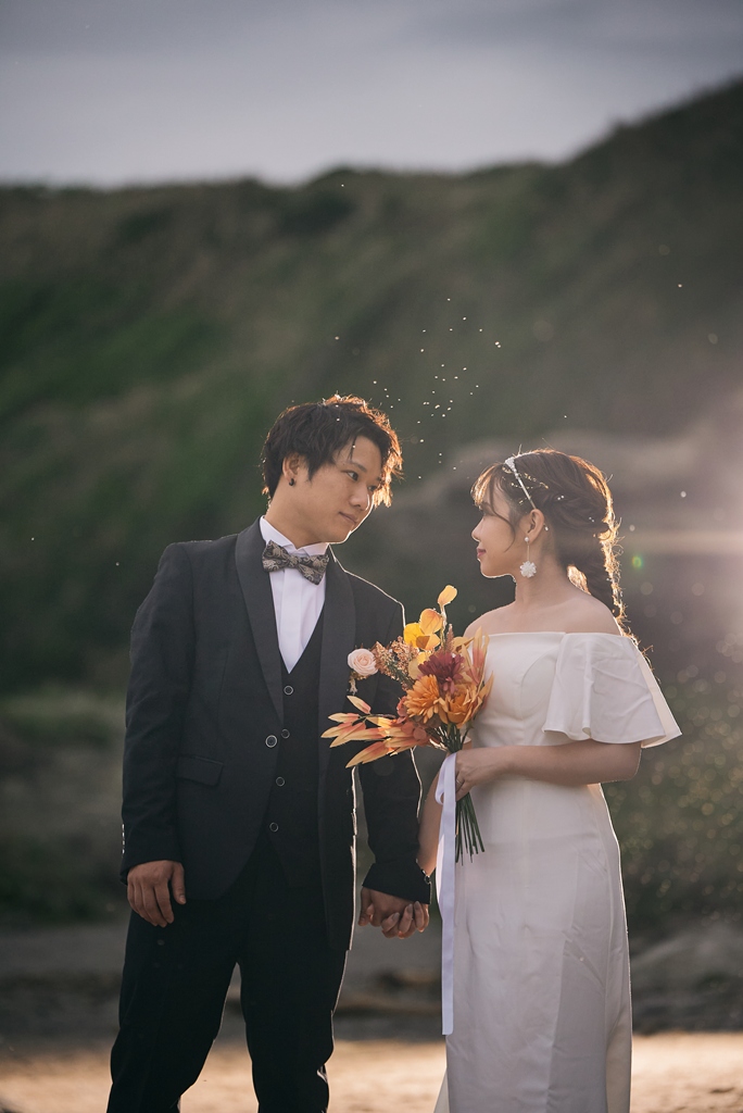 The moment the two of you stood within that magnificent landscape, the scenery shifted into something like a movie scene, and your presence became even more striking and elegant.Your warm smiles, the way you gently held hands with a touch of shyness, and the moment the breeze softly lifted the hem of the dress—all of these scenes were captured tenderly and beautifully, reflecting your story just as it is.