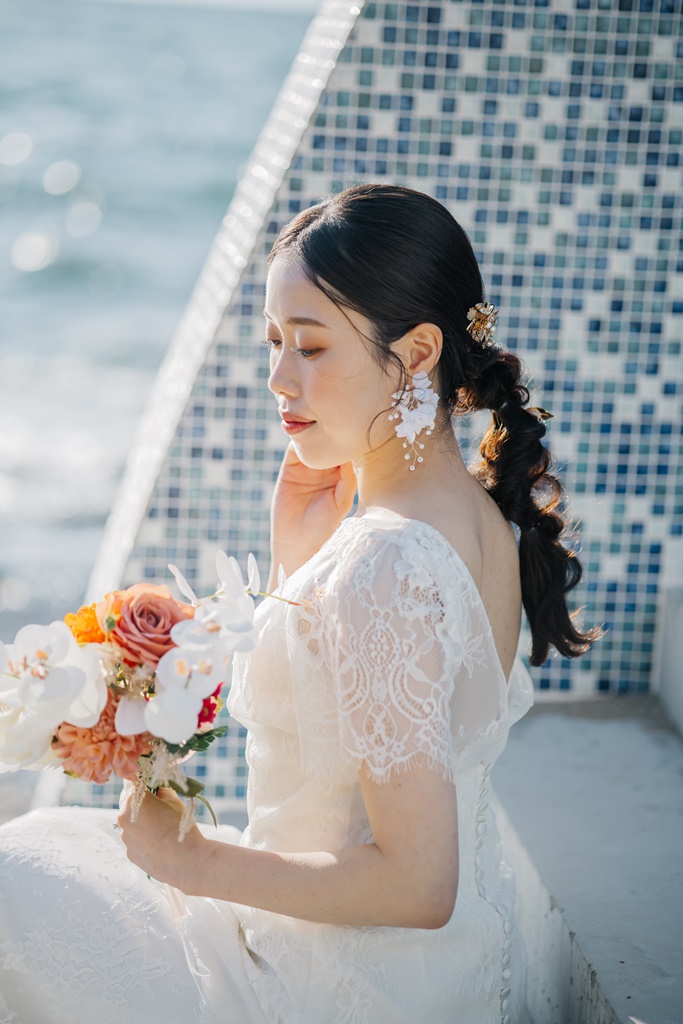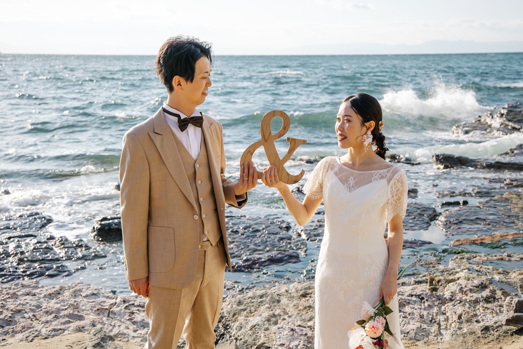 - The kimono, which tends to fall apart easily, was fixed each time it was taken. It was good that the photographer chose a shooting method and location that suited the shooting accessories. For the western style wedding, it was nice to be able to shoot with the setting sun of the Noma Lighthouse in the background. I thought it would take a long time because we chose a plan that included an opening movie, but I am glad that the shooting was completed smoothly.