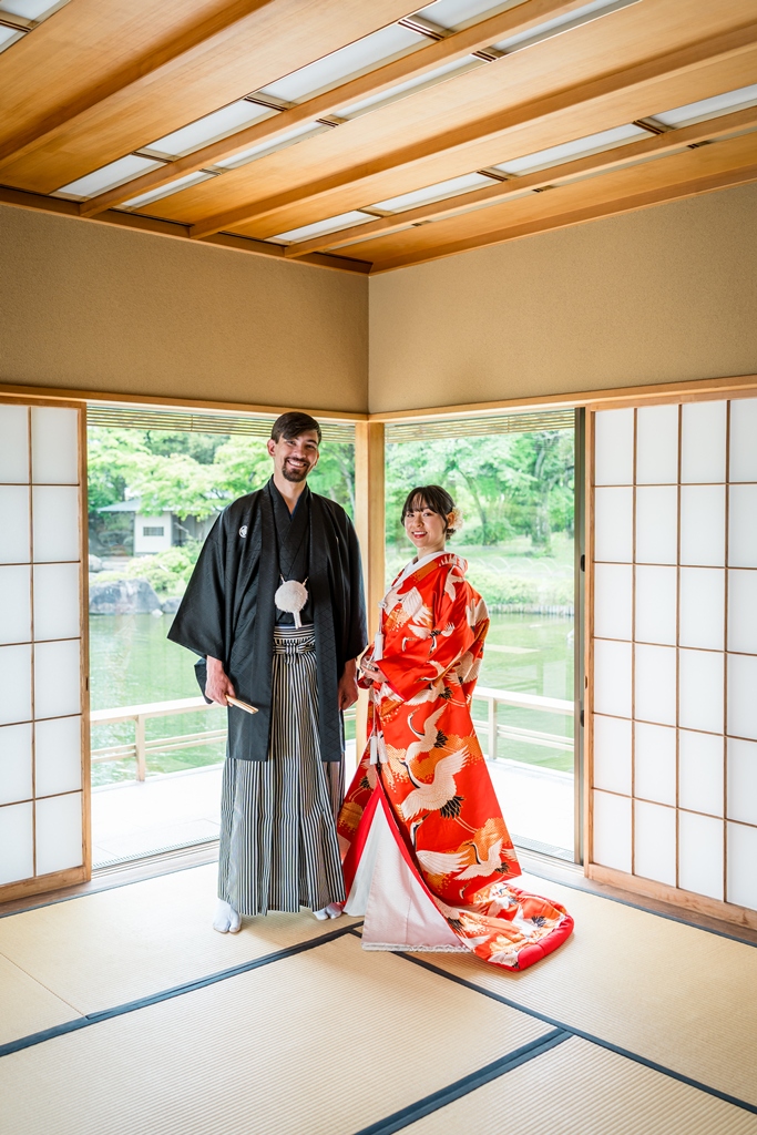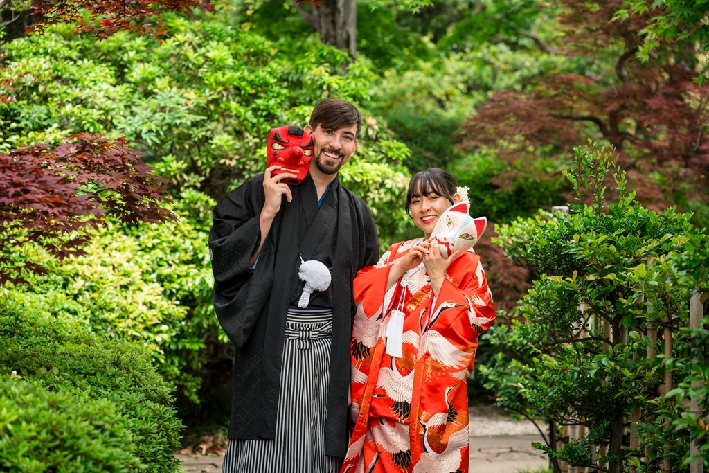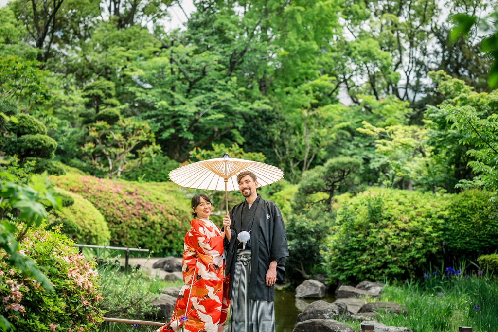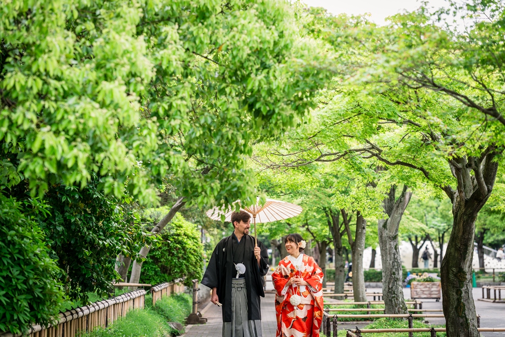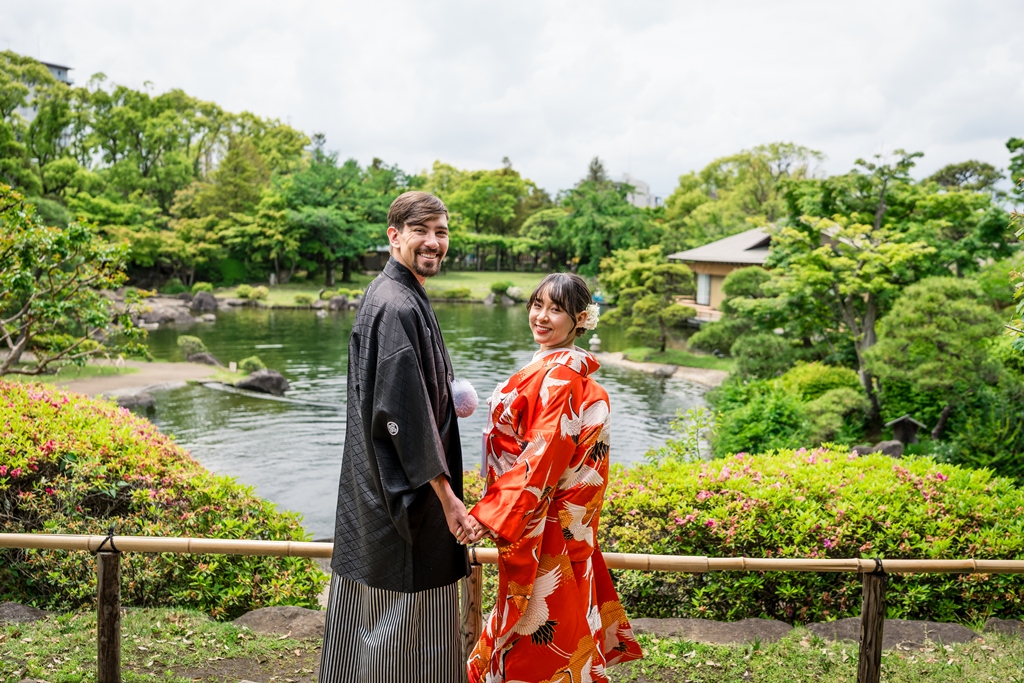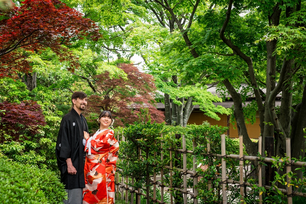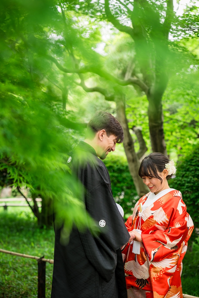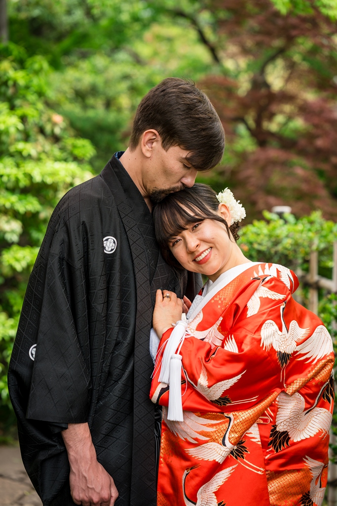 The lush greenery, the gentle flow of water, and the soft breeze that rustled through the trees all seemed to be celebrating your new journey together. Watching the two of you dressed in elegant kimono, smiling and blending seamlessly into the natural surroundings, felt like witnessing a scene from a timeless film. It was a truly unforgettable day for all of us who had the pleasure of being part of it.