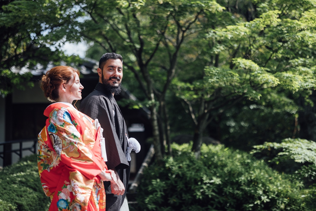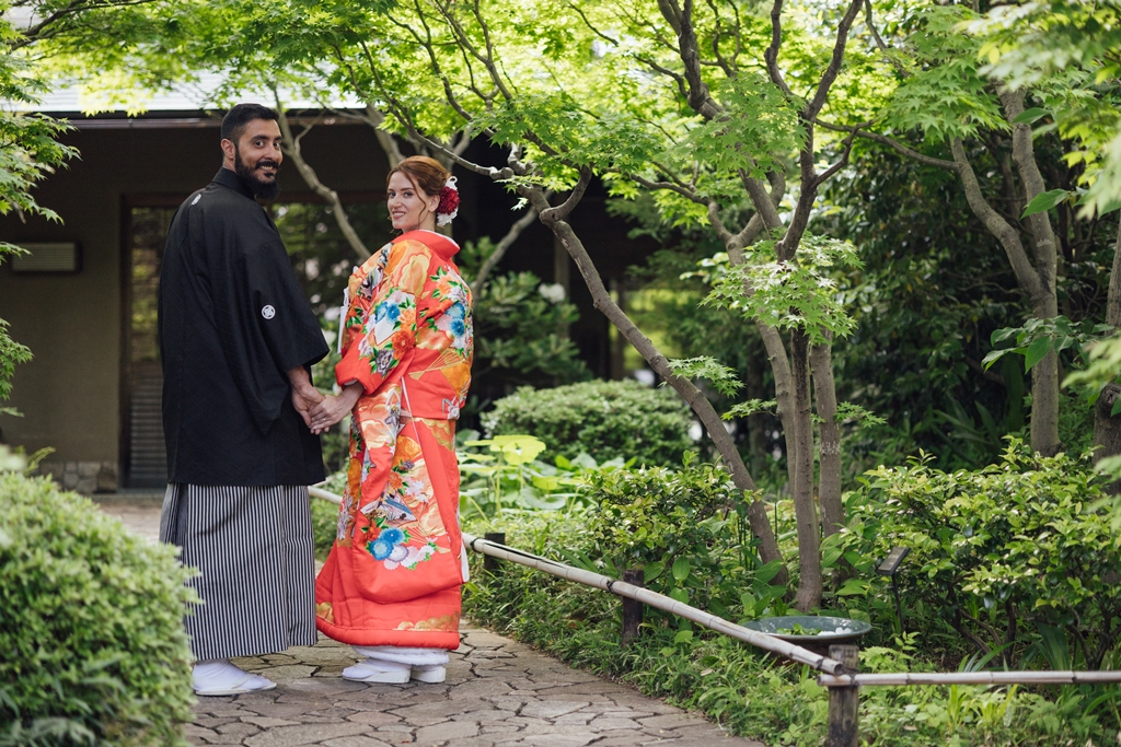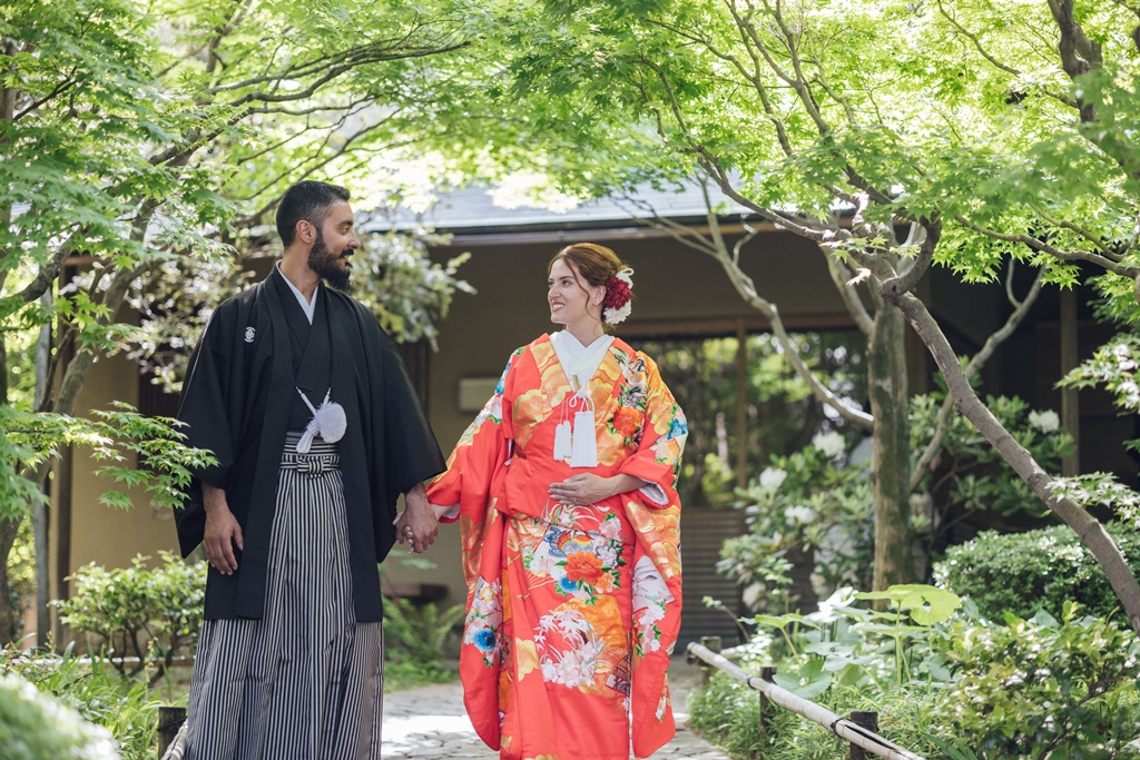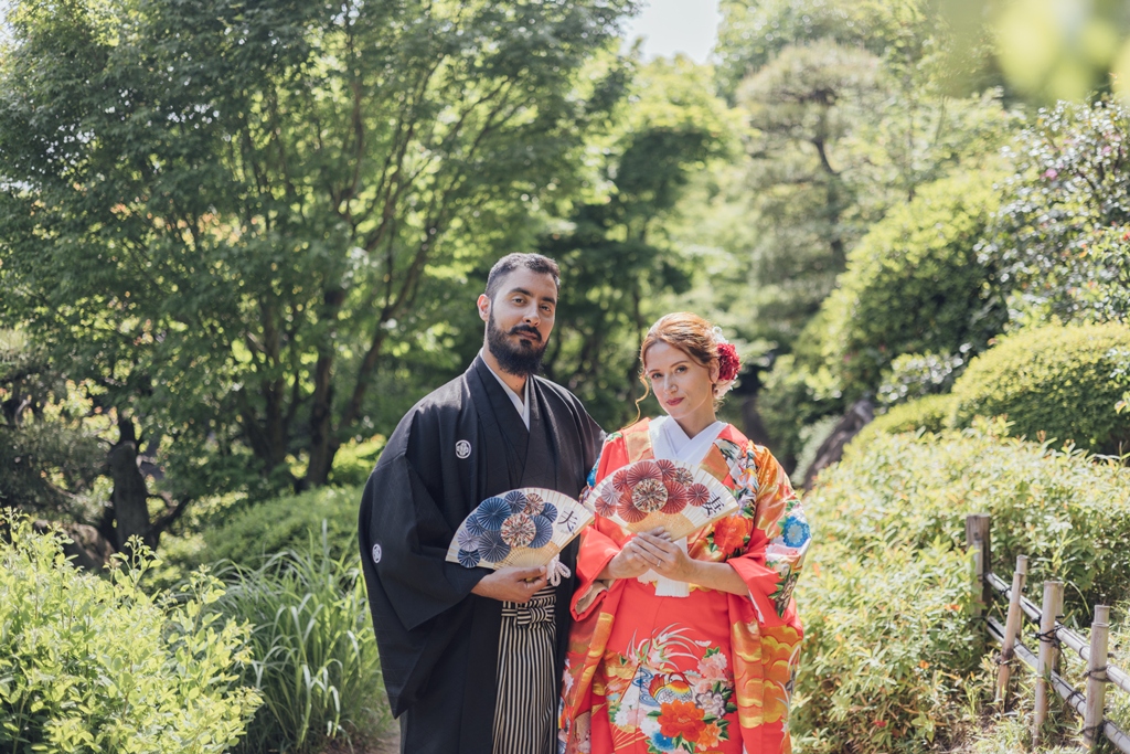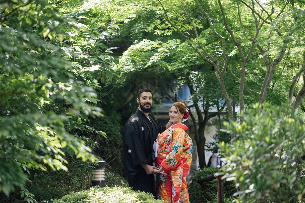 Mejiro Garden, with its quiet serenity and seasonal beauty, is a truly special place where the spirit of traditional Japan can be deeply felt. Seeing the two of you dressed in elegant Japanese attire within this peaceful setting was like watching a scene from a film. Your respectful and graceful embrace of the white kimono and iro-uchikake, garments rich in history and meaning, left a lasting impression on all of us.