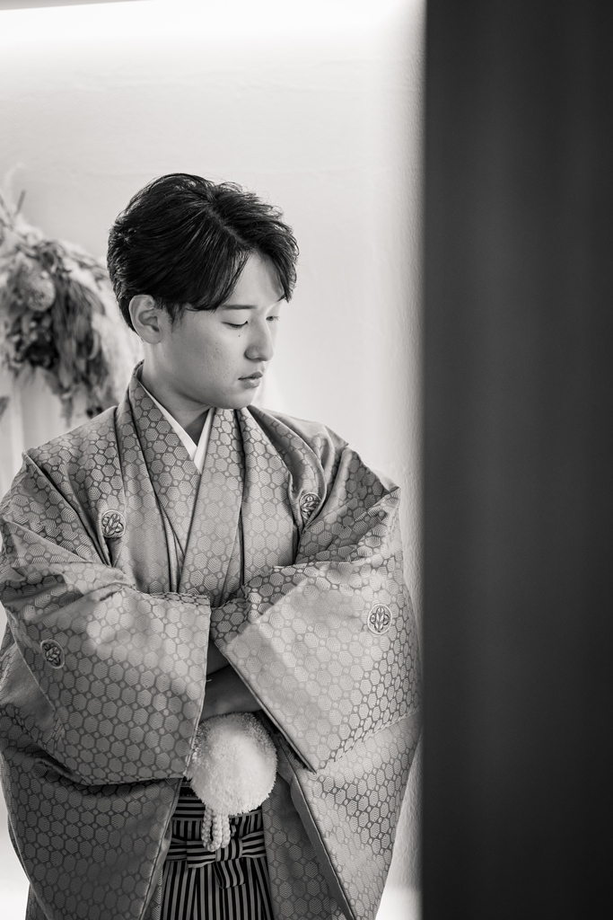 The studio setting allowed us to capture the gentle touch of natural light and the interplay of brightness and shadow, creating a finish reminiscent of fine art. By combining the elegance of traditional kimono with the sophistication of a modern studio, your photos became a timeless expression of love.