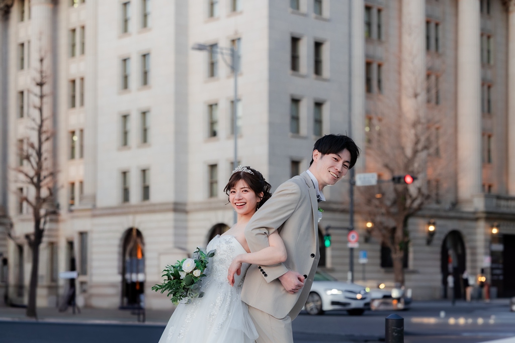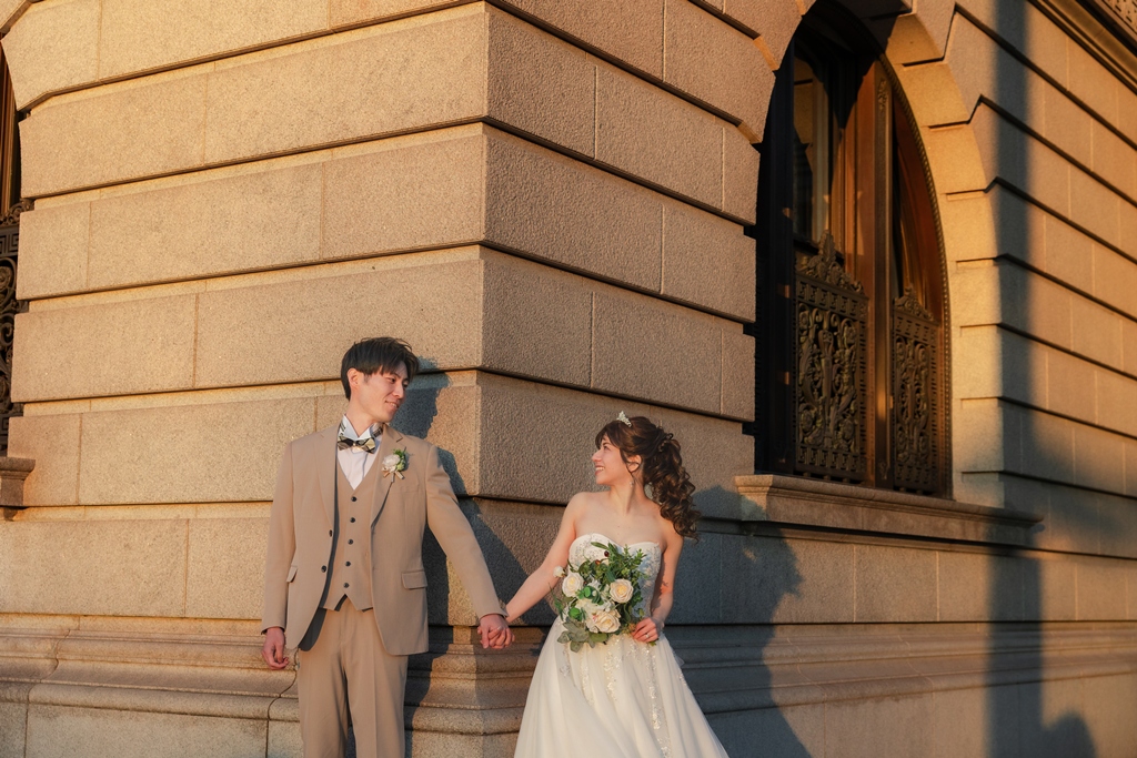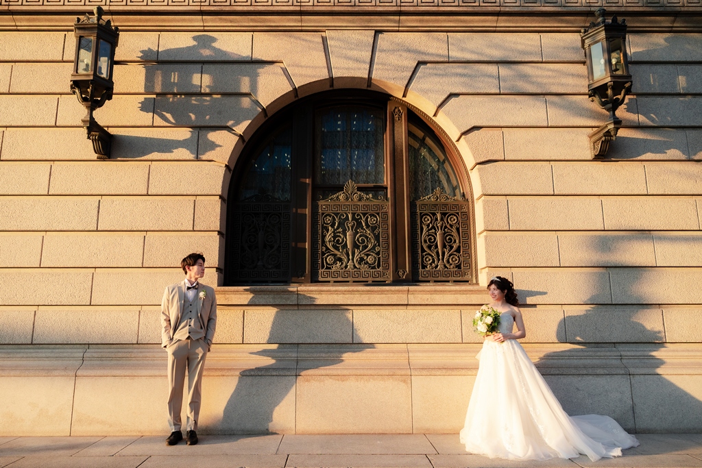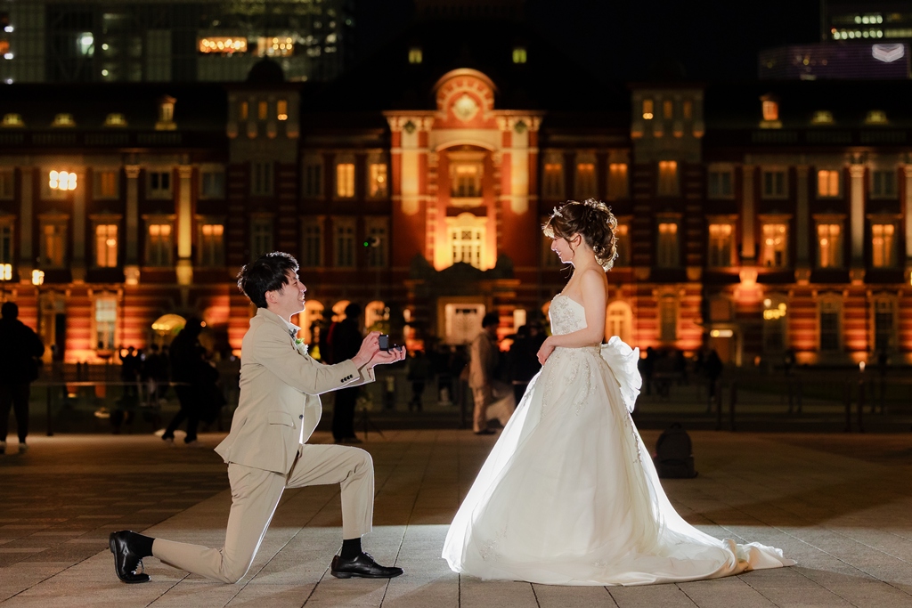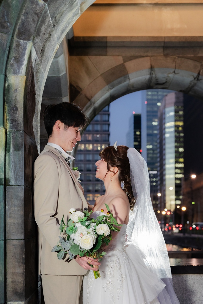 Your warm smiles, the way you held hands, and the glances you exchanged—all of it moved us deeply.Standing in front of Tokyo Station, a place rich in history, your presence in elegant attire seemed to beautifully harmonize with its timeless dignity.