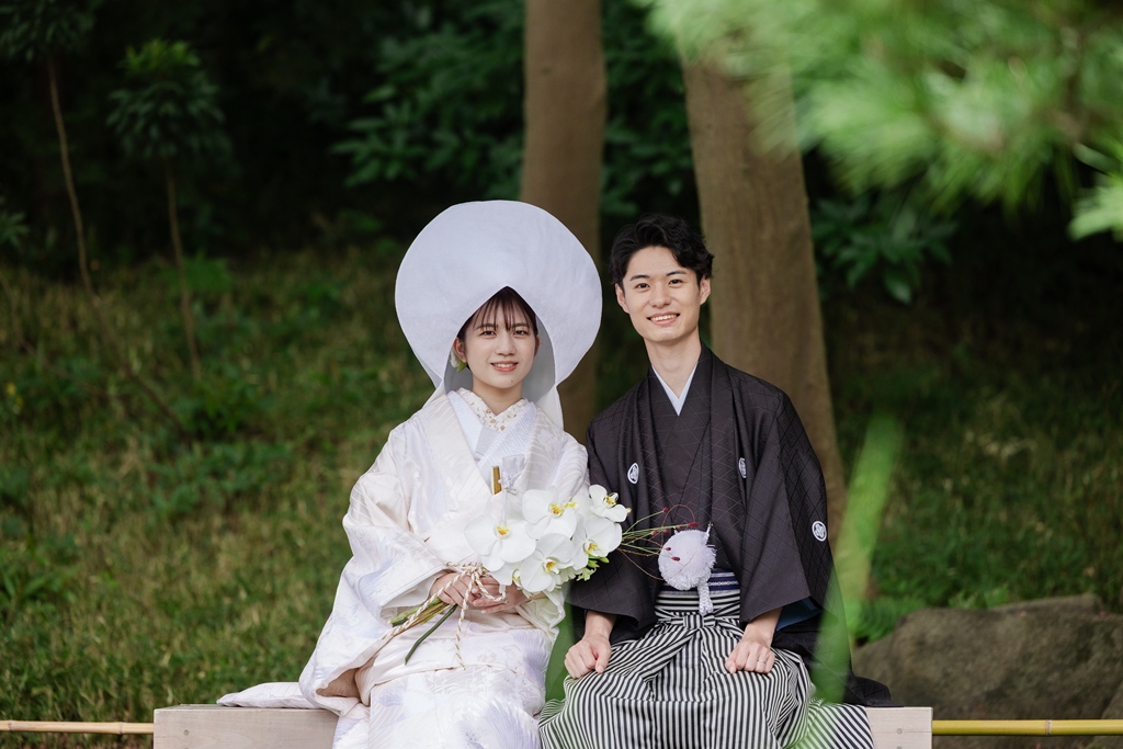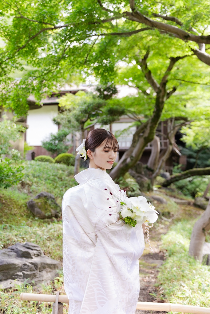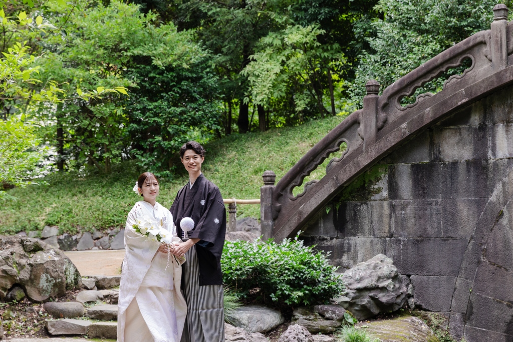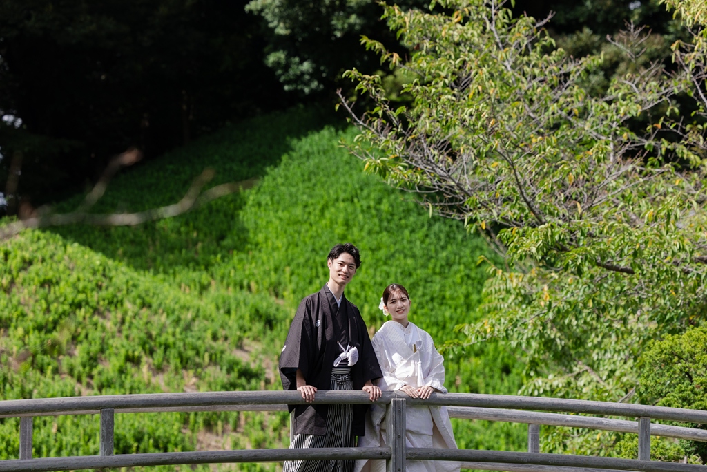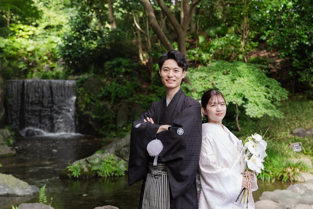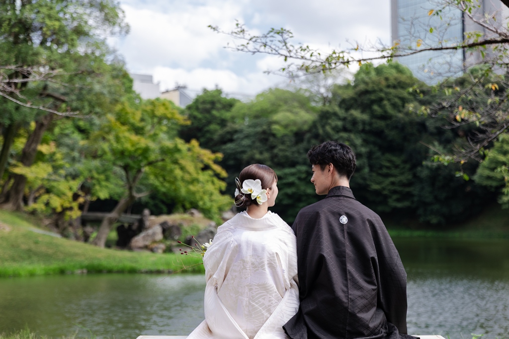 The purity of the white shiromuku and the elegance of the montsuki harmonized perfectly with the garden’s scenery, blending timeless tradition with your unique personalities in a way that touched our hearts again and again.Kiyosumi Garden is a special place that reflects the beauty of Japan’s four seasons and the serenity of nature.