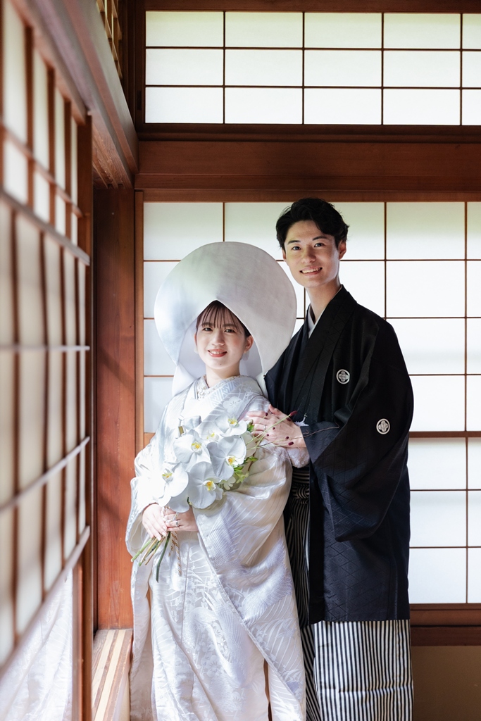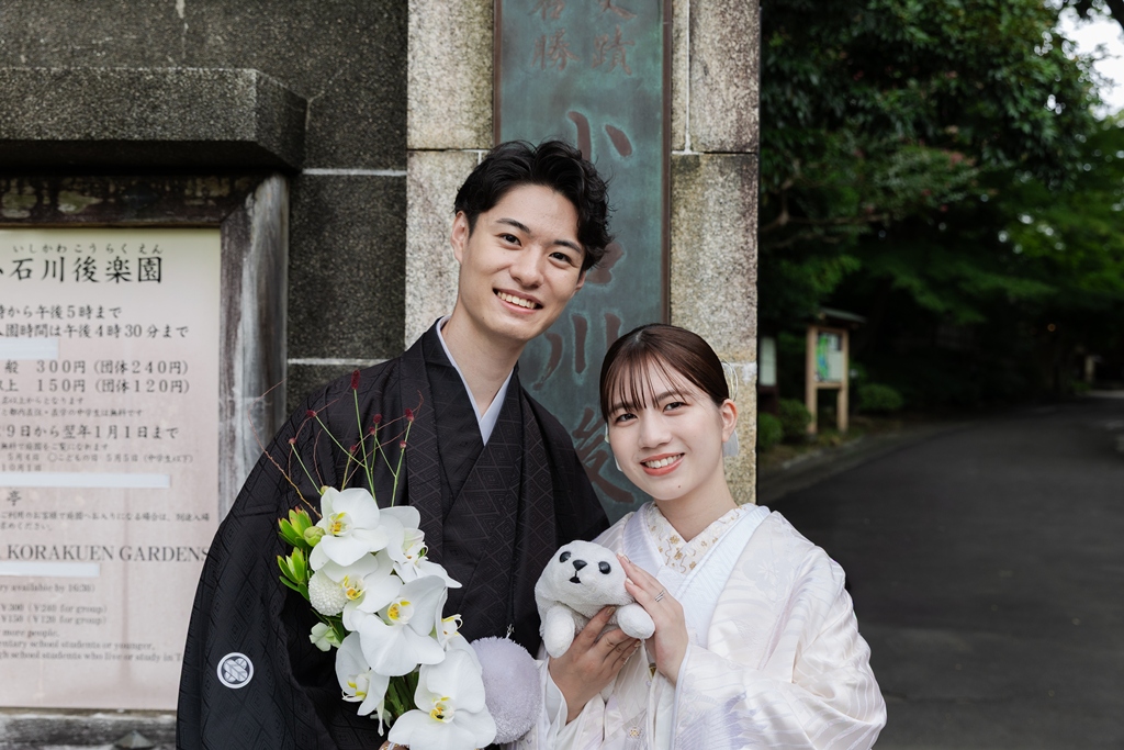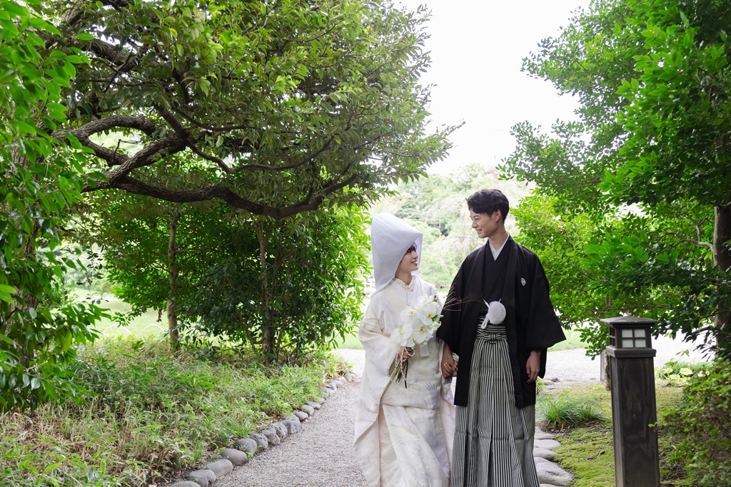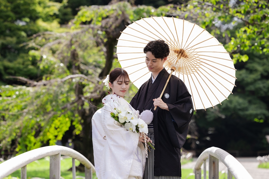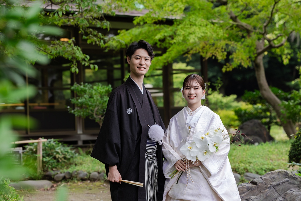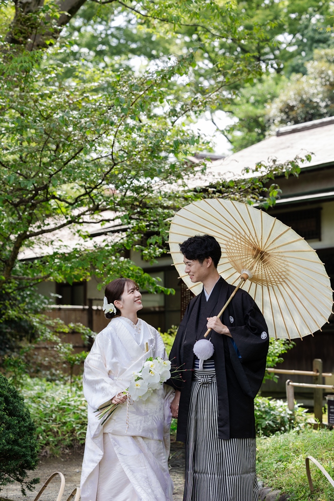 The purity of the white shiromuku and the elegance of the montsuki harmonized perfectly with the garden’s scenery, blending timeless tradition with your unique personalities in a way that touched our hearts again and again.Kiyosumi Garden is a special place that reflects the beauty of Japan’s four seasons and the serenity of nature.