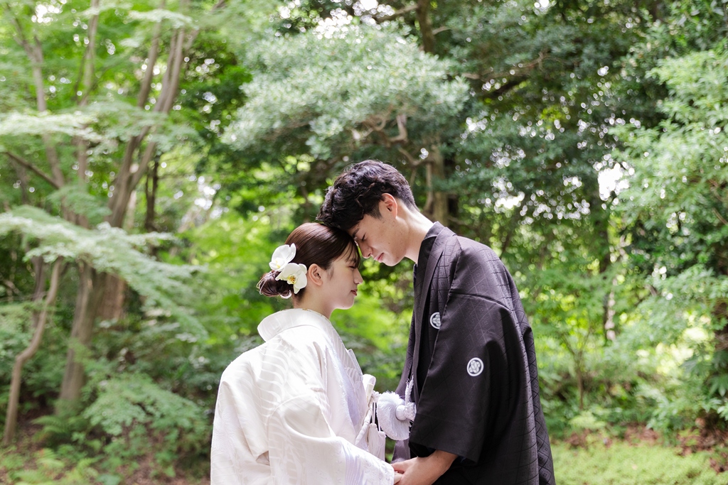 Surrounded by the colors of the season, the way you stood close together in the tranquil garden was like a scene from a traditional painting. Our team was deeply moved as we captured each precious moment.