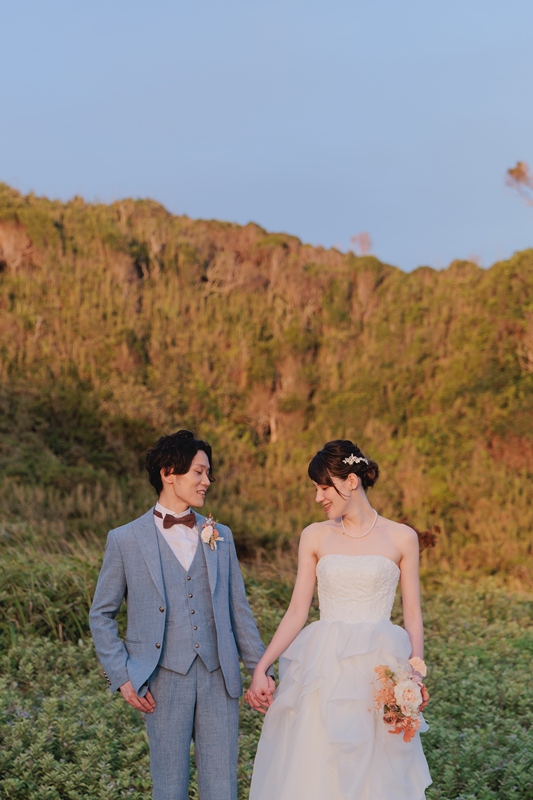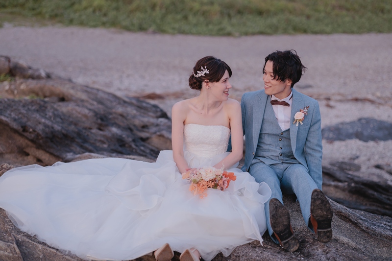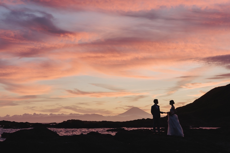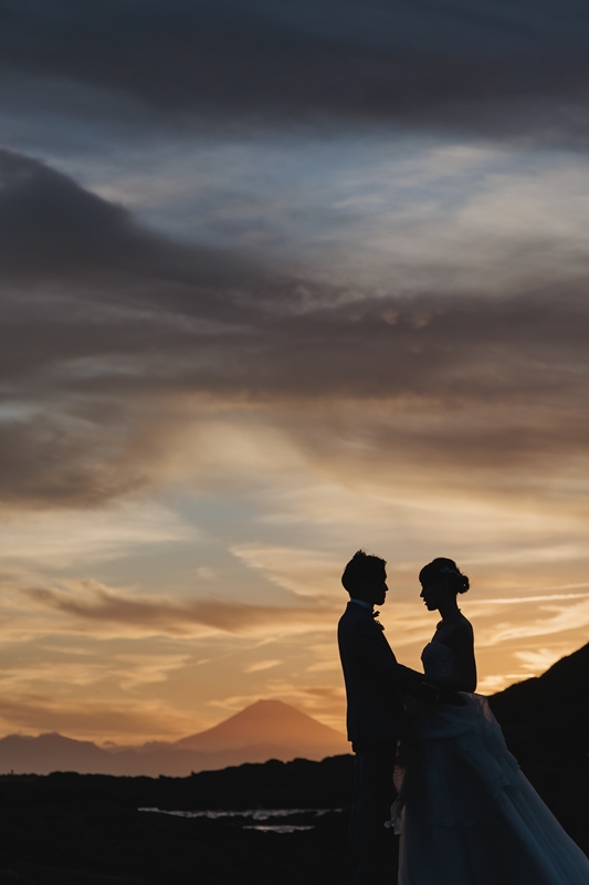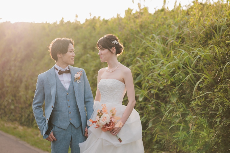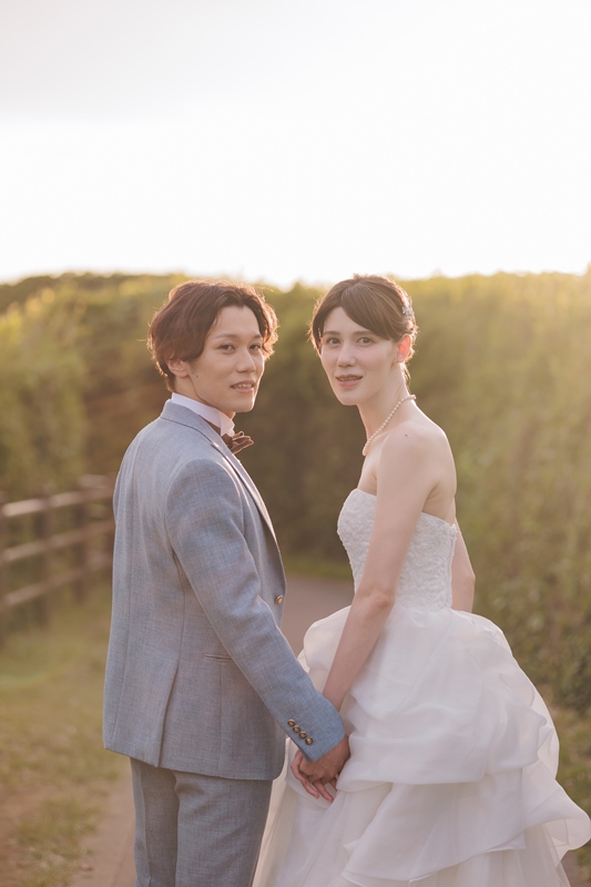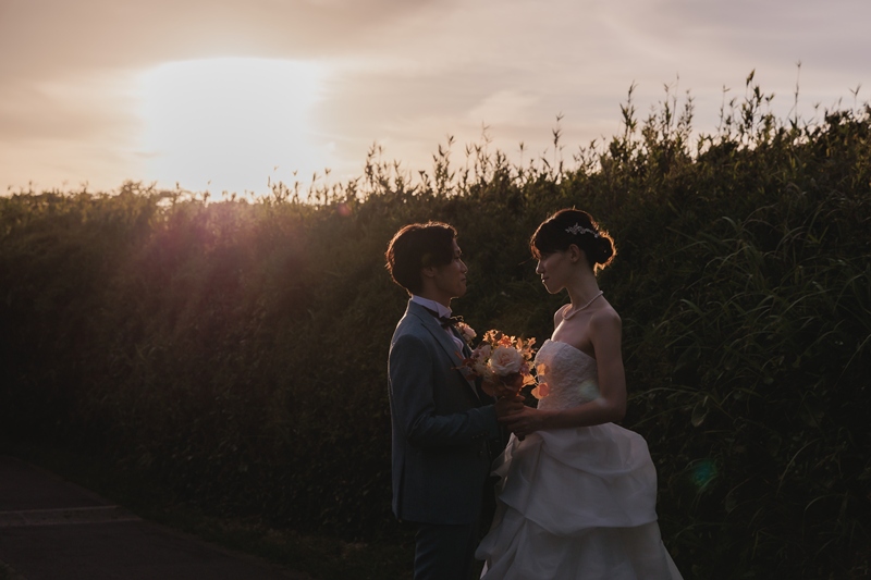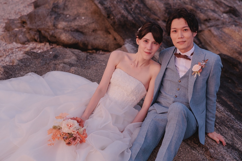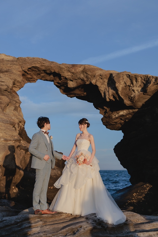 With a gentle sunset glow – A wedding photoshoot in Western attire at Jogashima