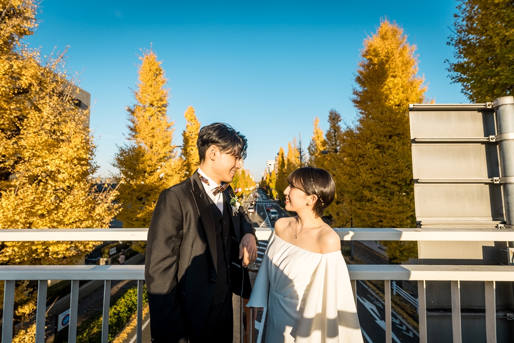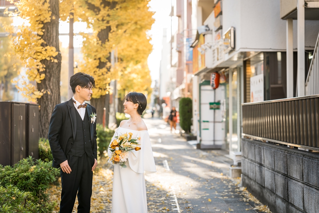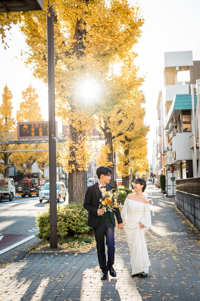 Thank you once again for your hard work in shooting in the Nishi-Hachioji area, a place of memories for the two of you☆!A handsome scene full of melancholy as they walk along the ginkgo trees that remind us of autumn.