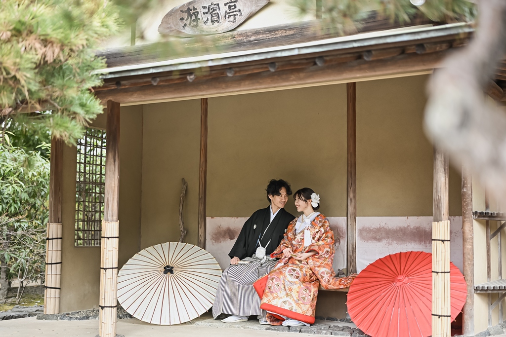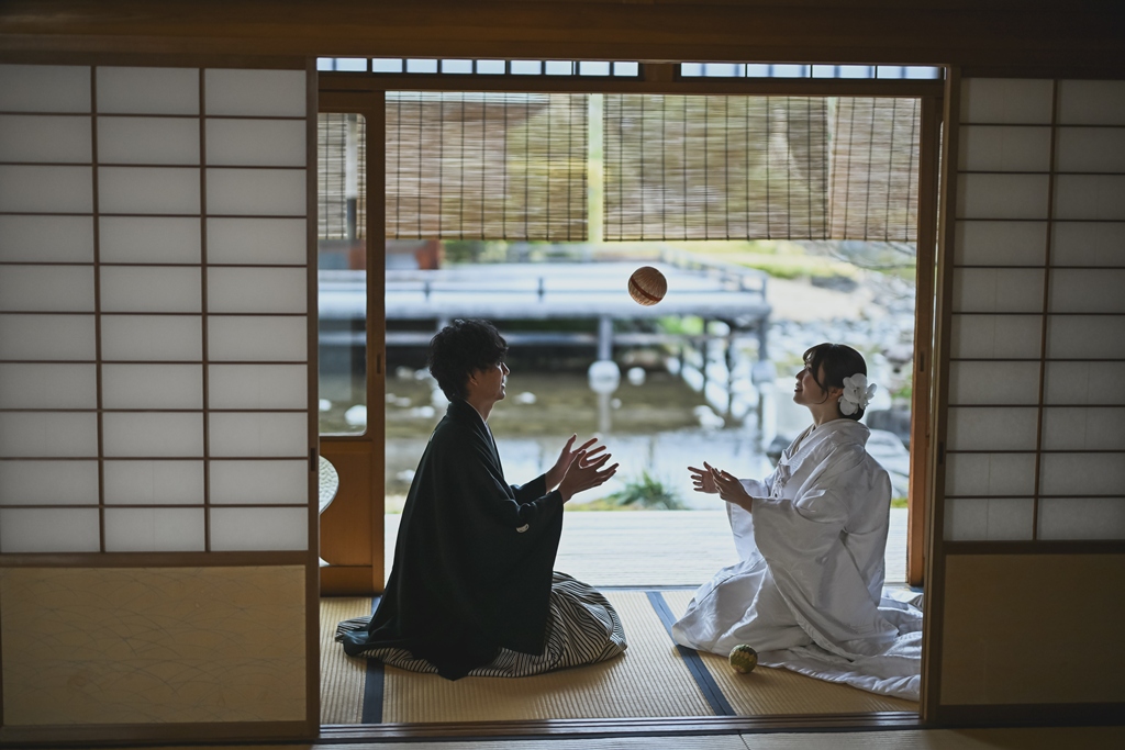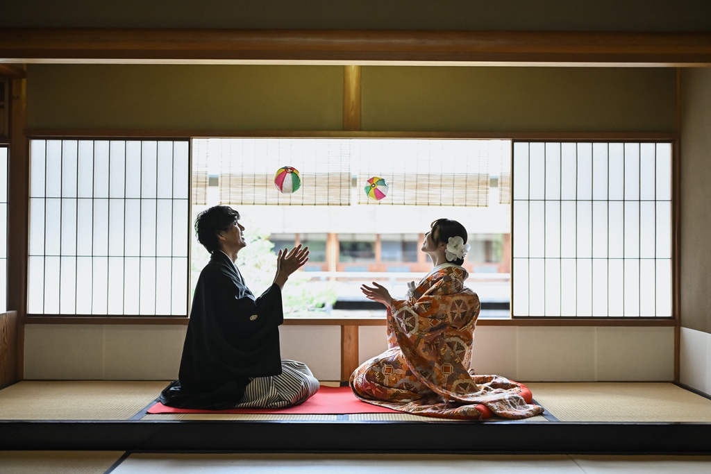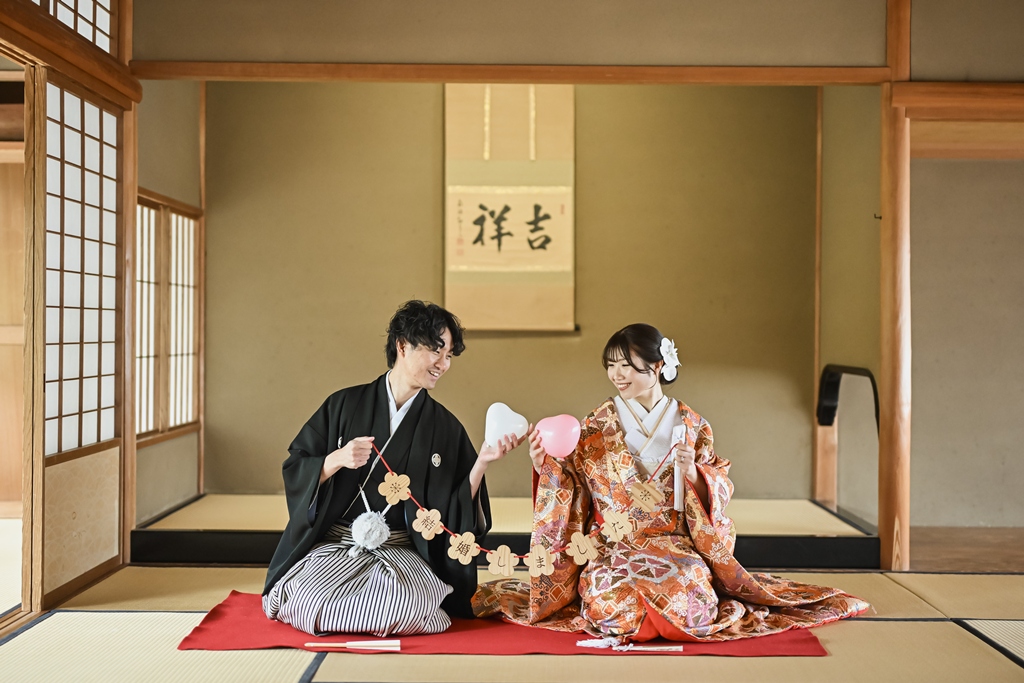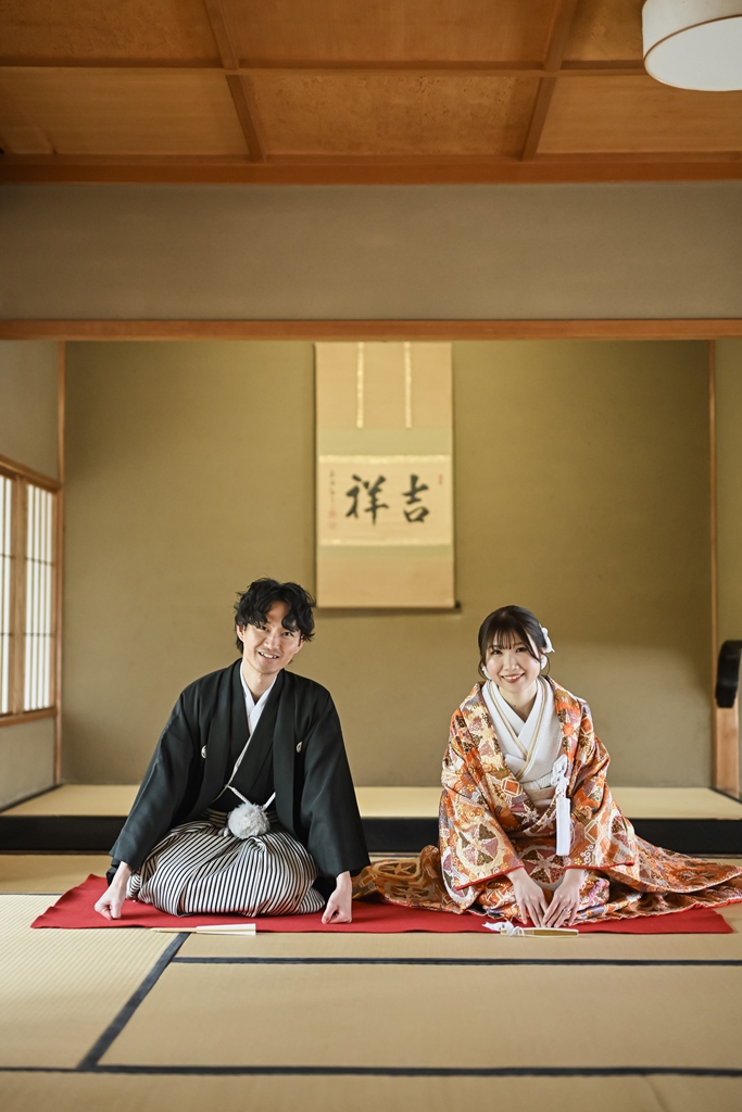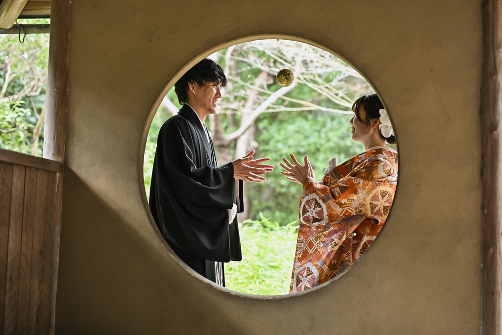 The shot at the tea ceremony room looks very fun.Above all, the two of you look really happy together, and the photos are full of happiness. We at
