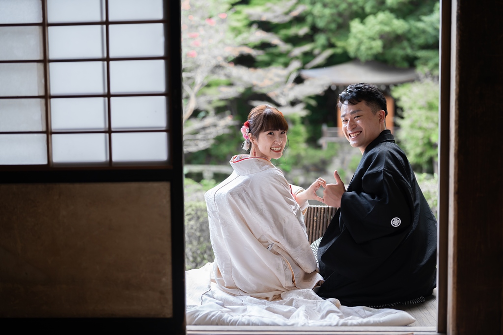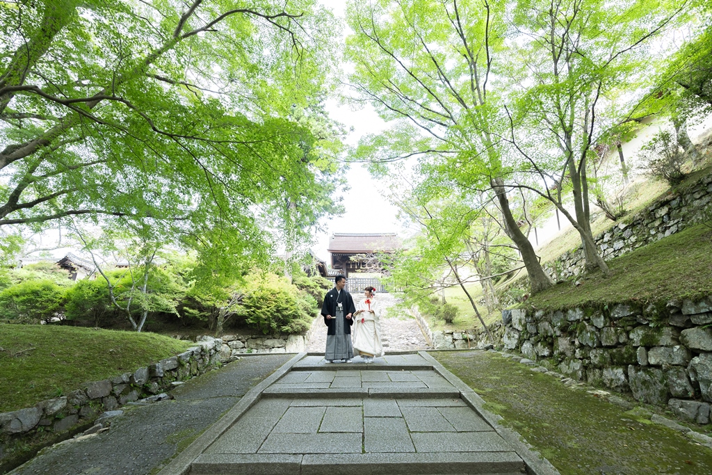 Japanese-style photo shooting at Bishamondo, where you can feel the four seasons. | Pre-Wedding Photography in Japan | WEDDING AVENUE