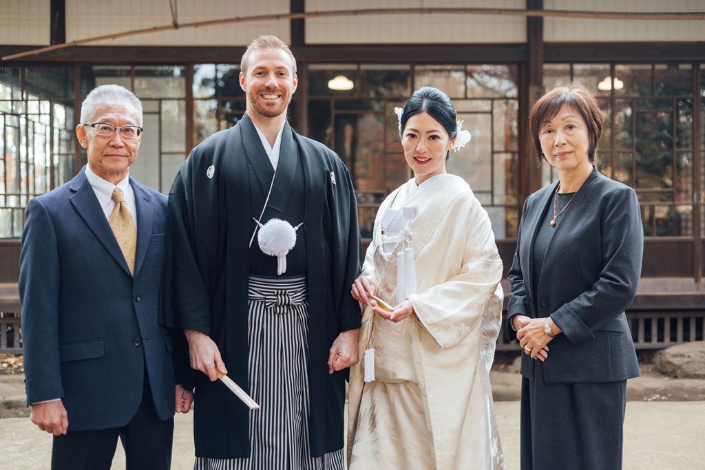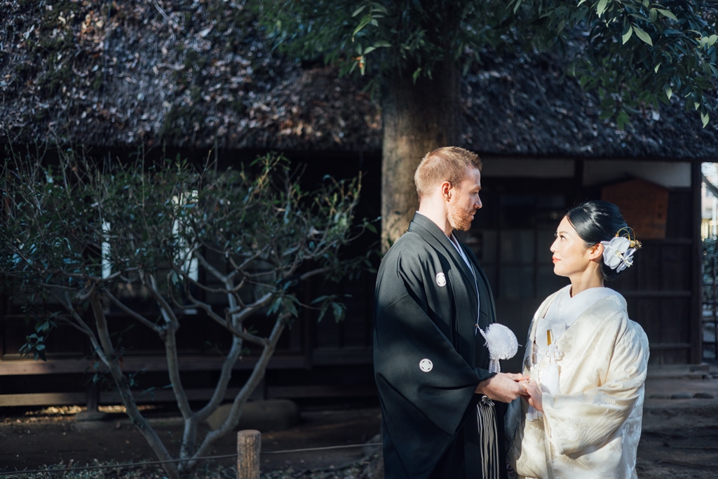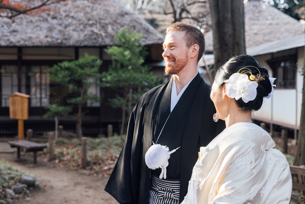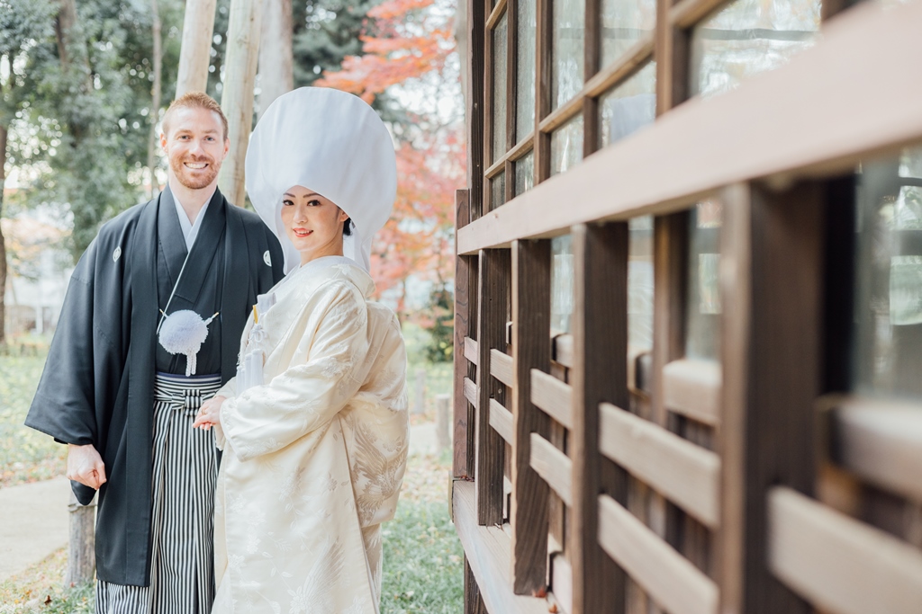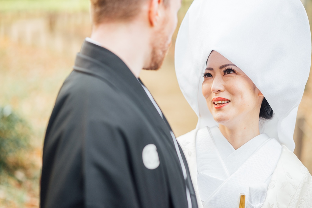 The bride wore a shiromuku with a cotton hat, while the groom wore a black montsuki, and both of you looked stunning together ♡