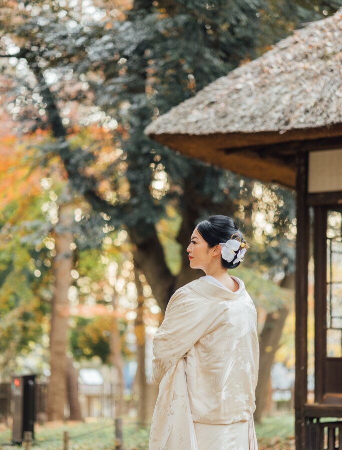 You can choose from over 50 locations, such as Kyoto, Kobe, Nagoya, and popular spots like Tokyo St. and Osaka Central Hall. your package may range from $1200 to $2000. Japanese-style photoshoot at Rosoku Koushun-en with autumn leaves and bamboo forest as the backdrop. | Pre-Wedding Photography in Japan | WEDDING AVENUE