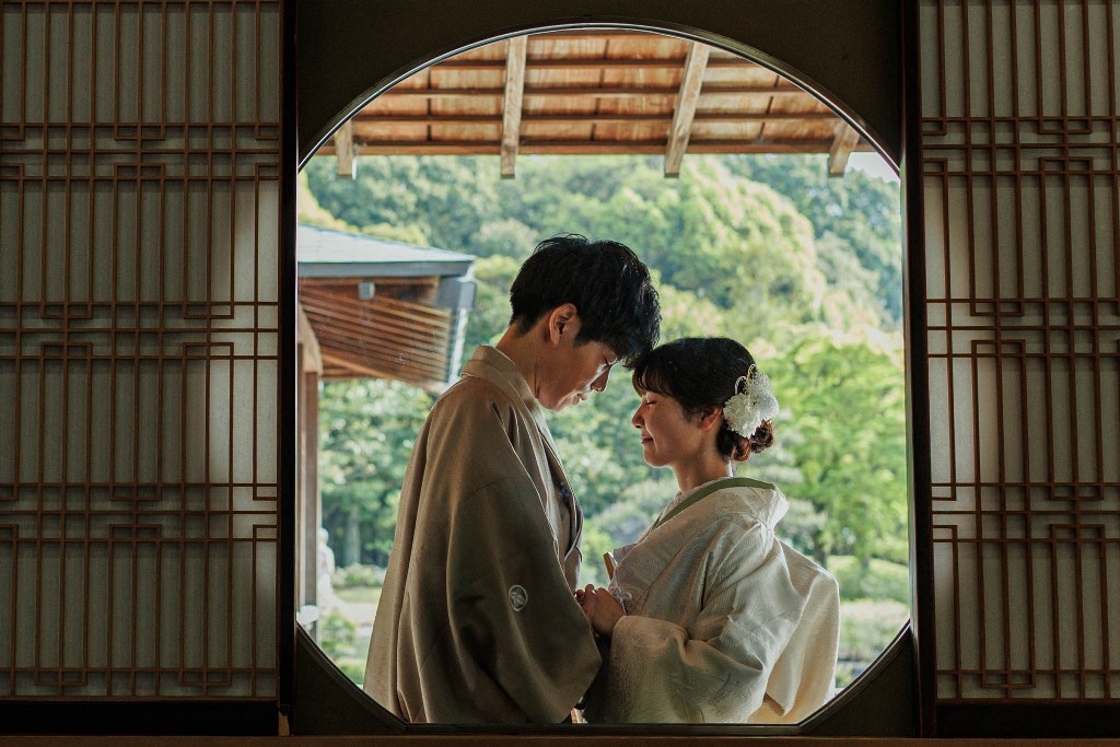 We wanted a place where we could wear a wedding dress in a chapel and traditional kimono in a garden—all in one day.