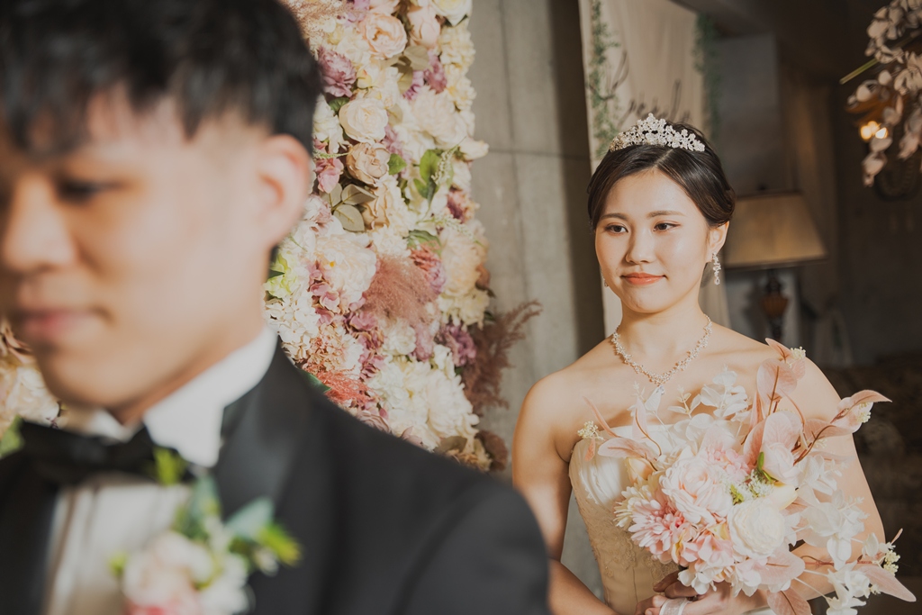 The bride looked radiant and elegant in her graceful wedding dress, her dazzling smile adding to her beauty. The groom looked equally handsome and dignified in his suit. Every moment you stood together was as refined as a scene from a movie.