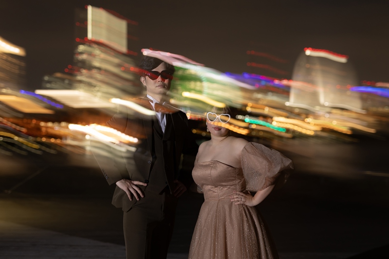 A Magical Night Wedding Photo Shoot at the Sparkling Osanbashi Pier